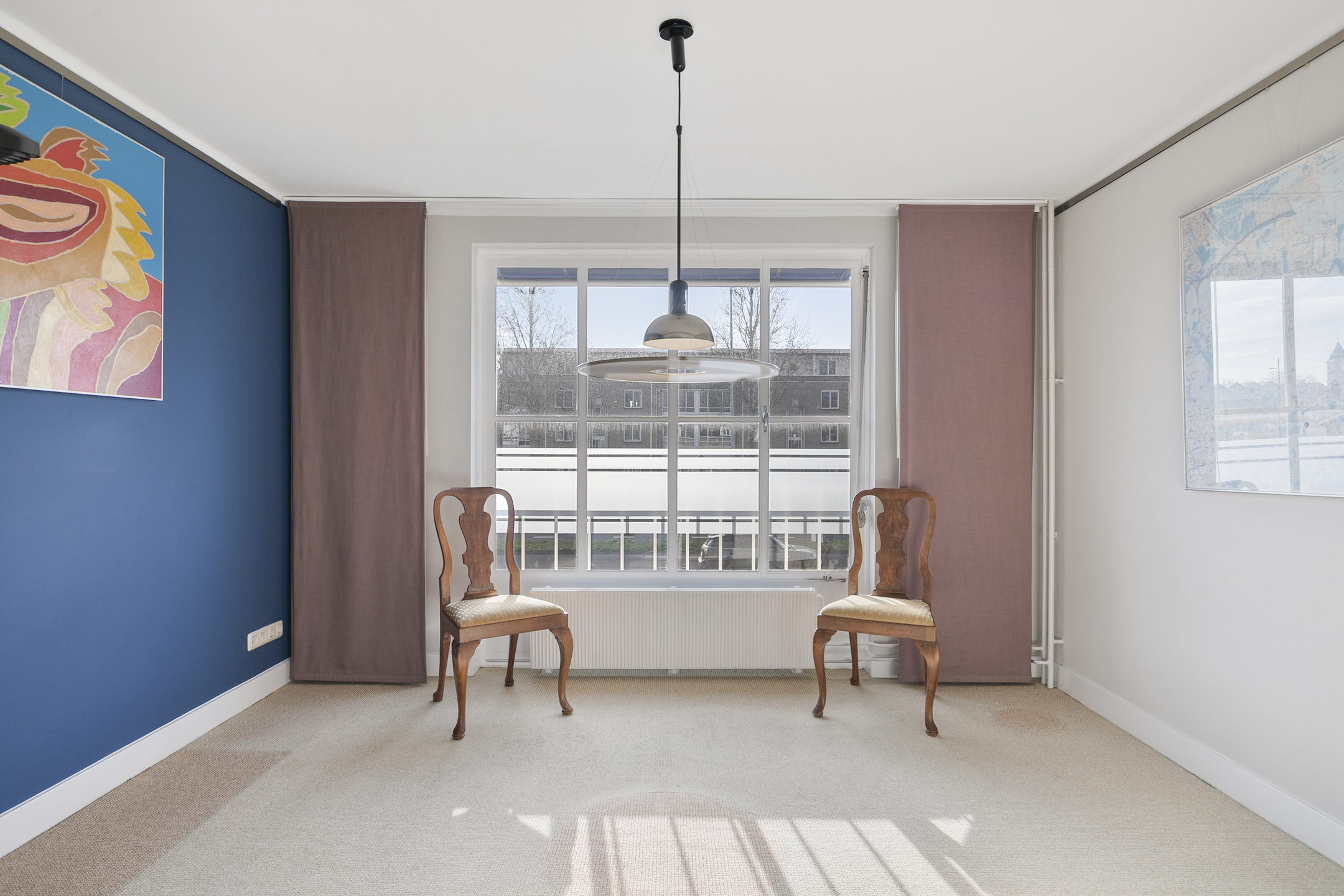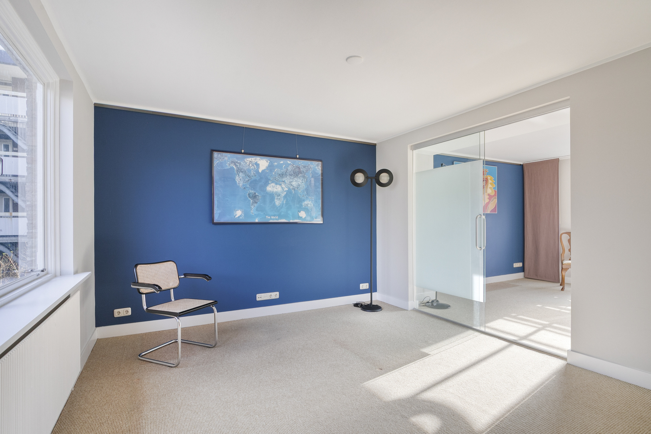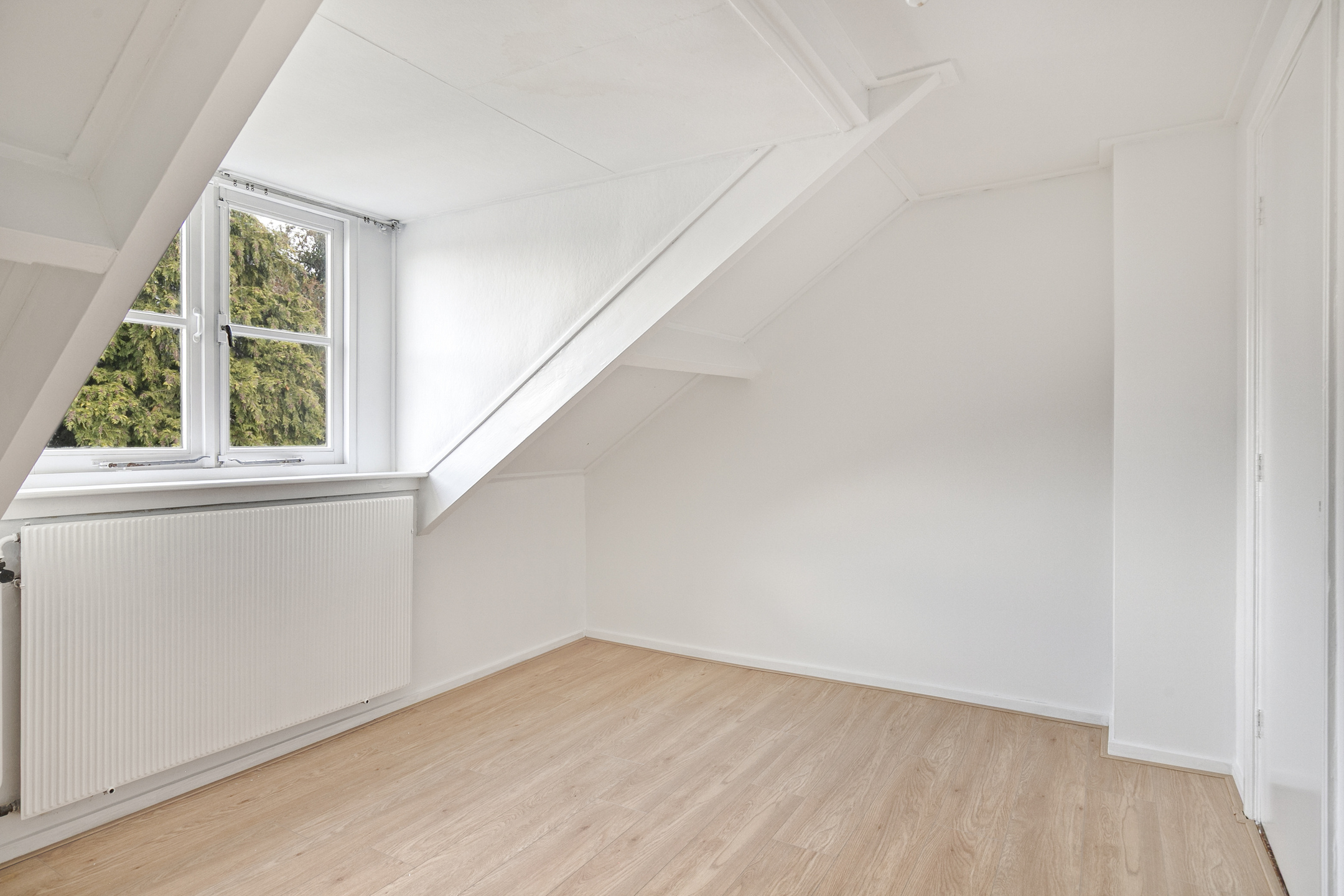 De twee ruime slaapkamers zijn momenteel met elkaar verbonden door een glazen schuifdeur. Beide kamers hebben ook een eigen toegangsdeur. Net als beneden is de lichtinval hier erg fijn. Beide kamers bieden voldoende ruimte voor een tweepersoonsbed, een kast en een bureau. Deze kamers zijn door het plaatsen van 2 muren en een extra deur op te splitsen in 3 aparte slaapkamers.