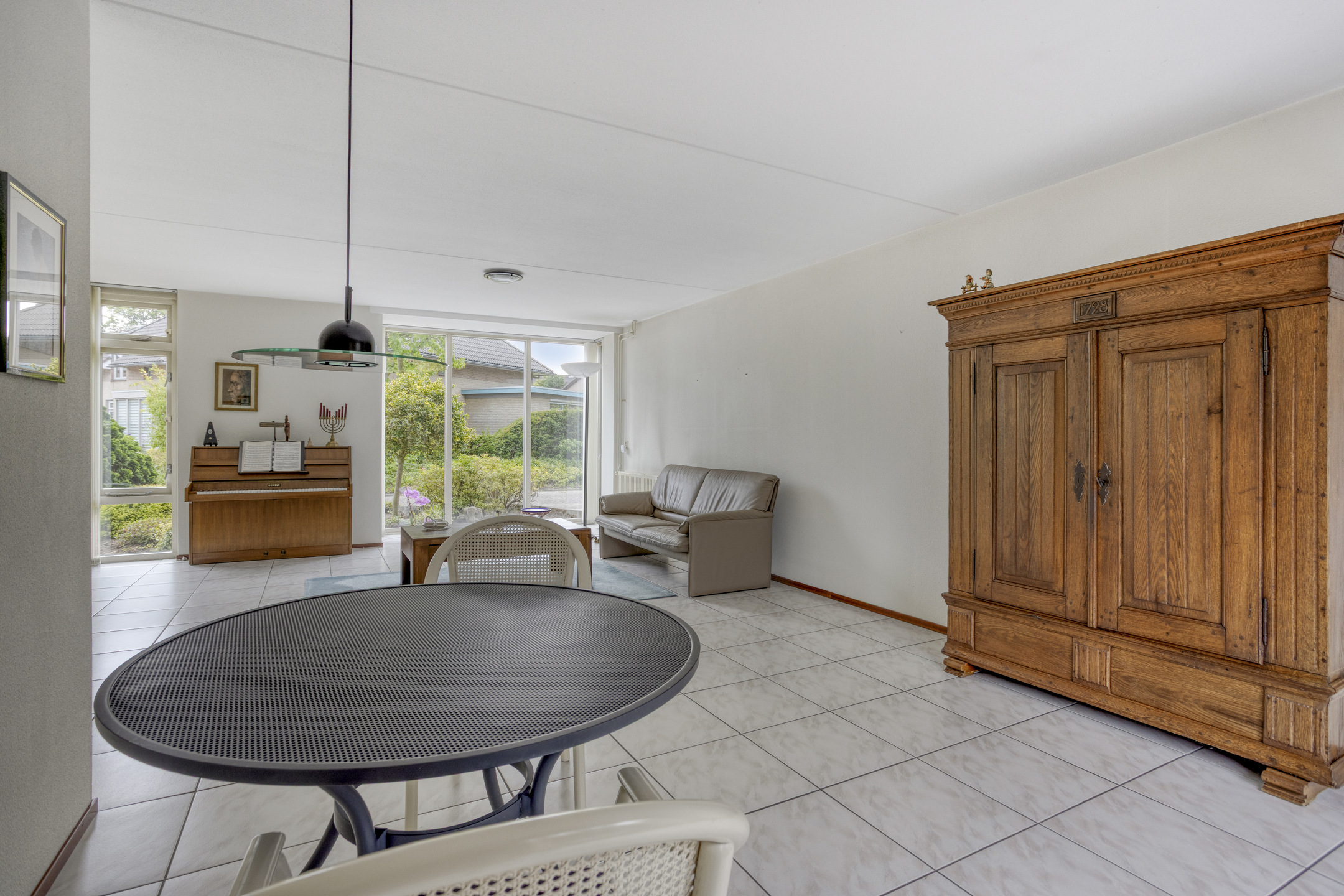 De begane grond is praktisch ingedeeld in twee leefzones. Aan de voorzijde vind je de ruime woonkamer, met volop plek voor een comfortabele zithoek. Grote ramen zorgen hier voor een prettige lichtinval. Aan de achterzijde ligt de eetkamer, met aansluitend de dichte keuken. Dankzij de openslaande tuindeuren geniet je ook hier van veel daglicht en een directe verbinding met de tuin.