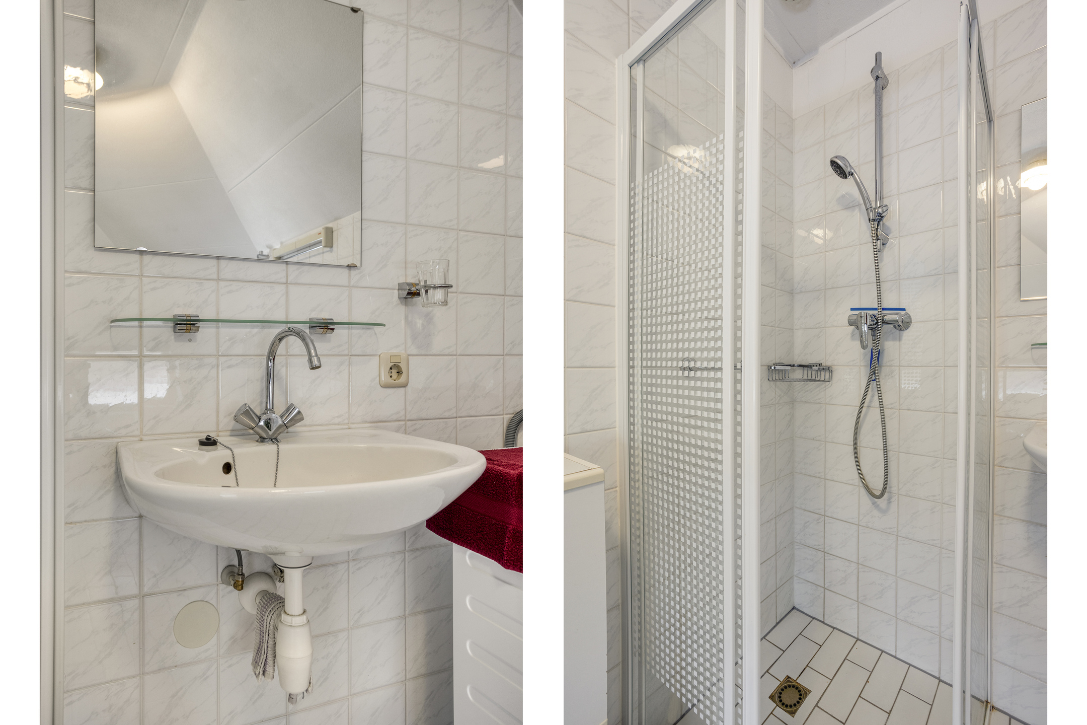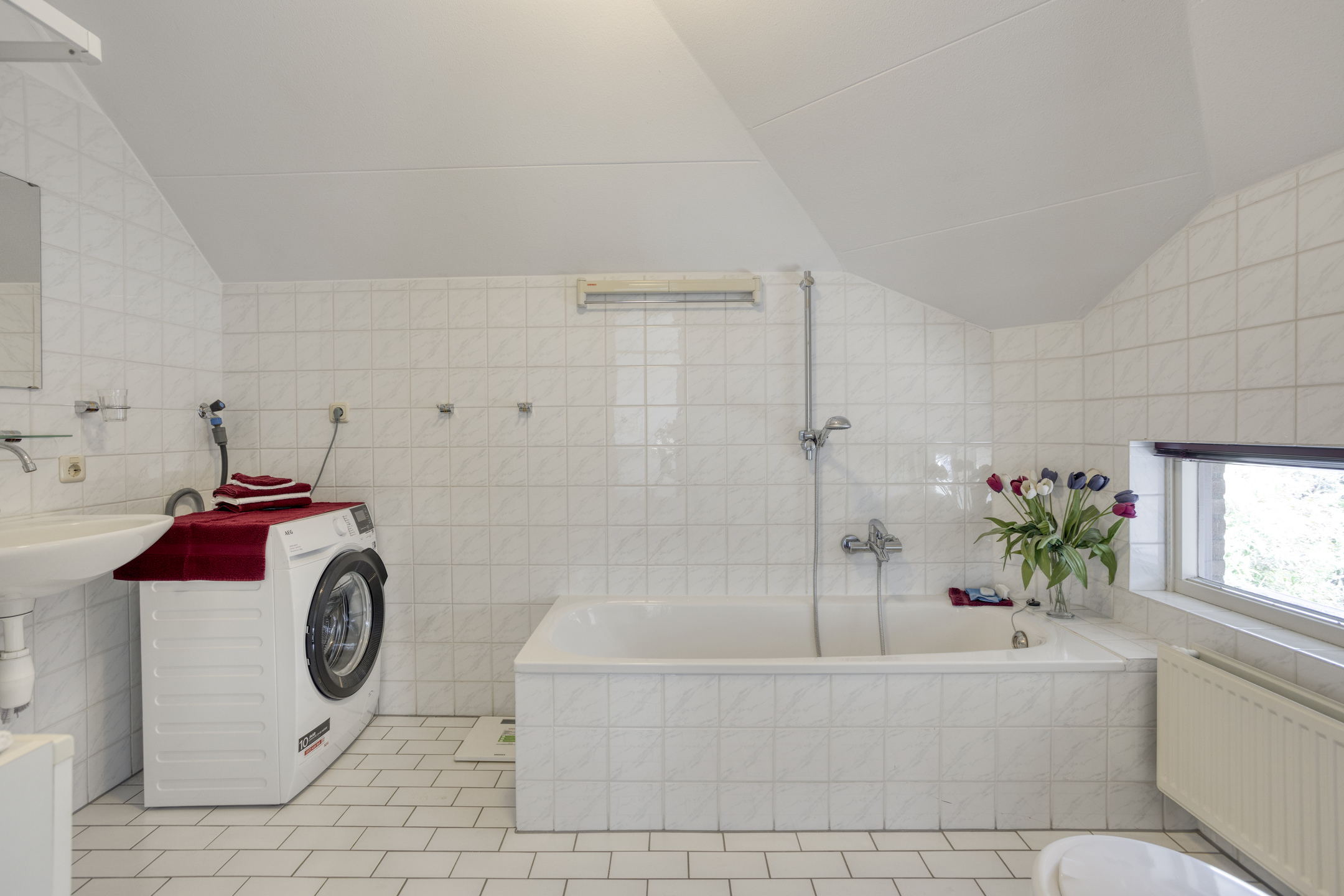 De badkamer is royaal van opzet en uitgerust met een ligbad, douchecabine, toilet en wastafel. Daarnaast is hier een extra aansluiting voor witgoedapparatuur aanwezig.