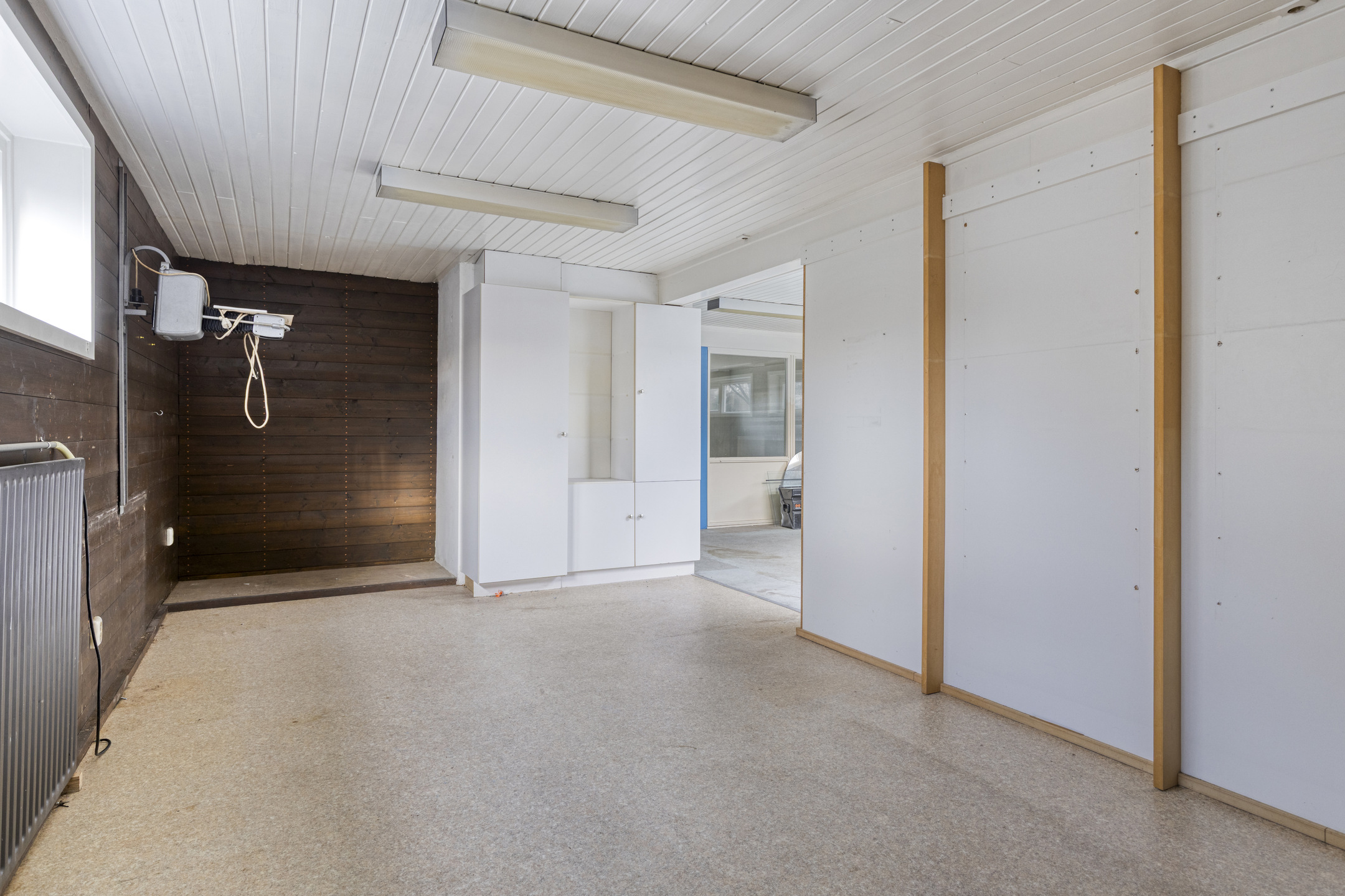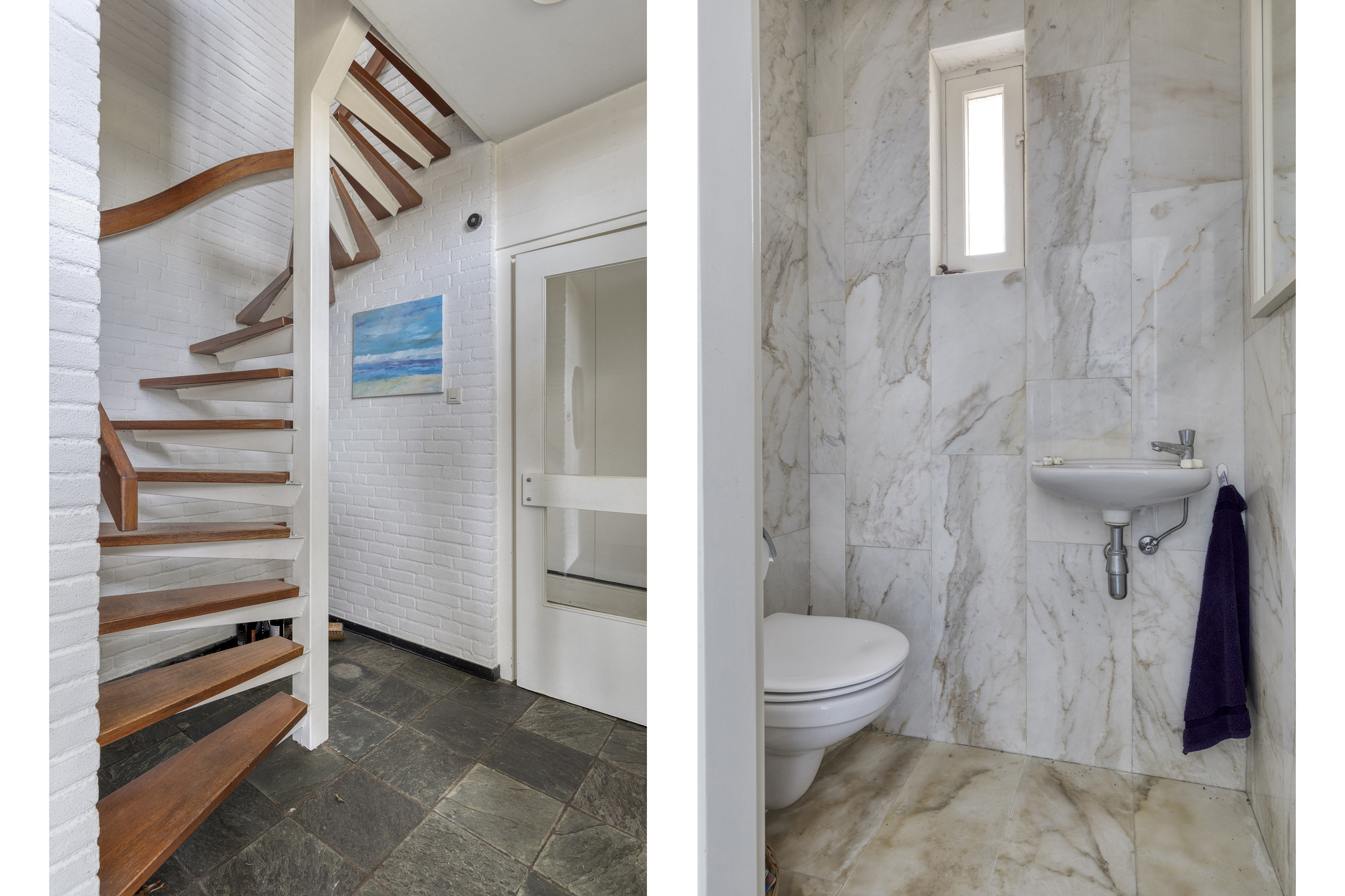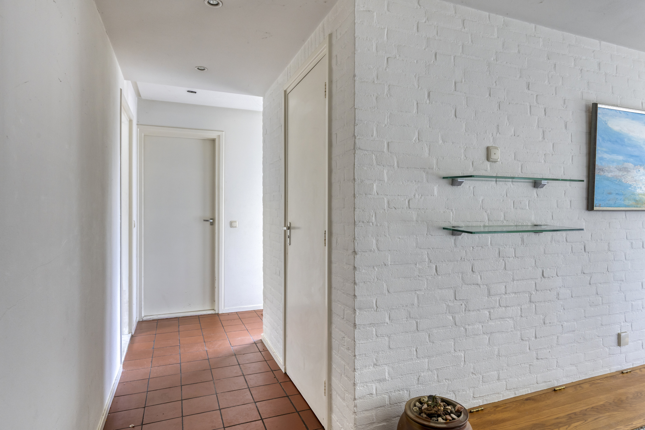 Via de entree komt u in de hal met toegang tot het toilet, de trapopgang en de woonkamer. De gang verbindt de woonkamer met de slaapvleugel en zorgt voor een duidelijke en praktische indeling.