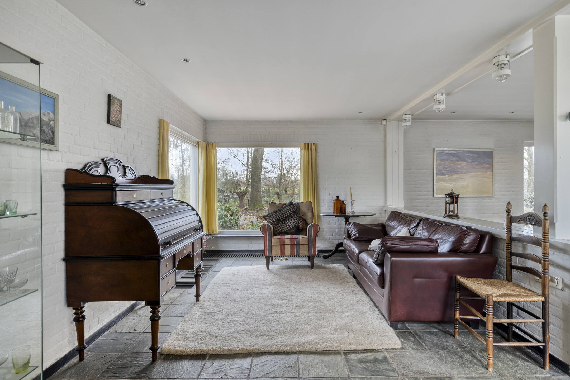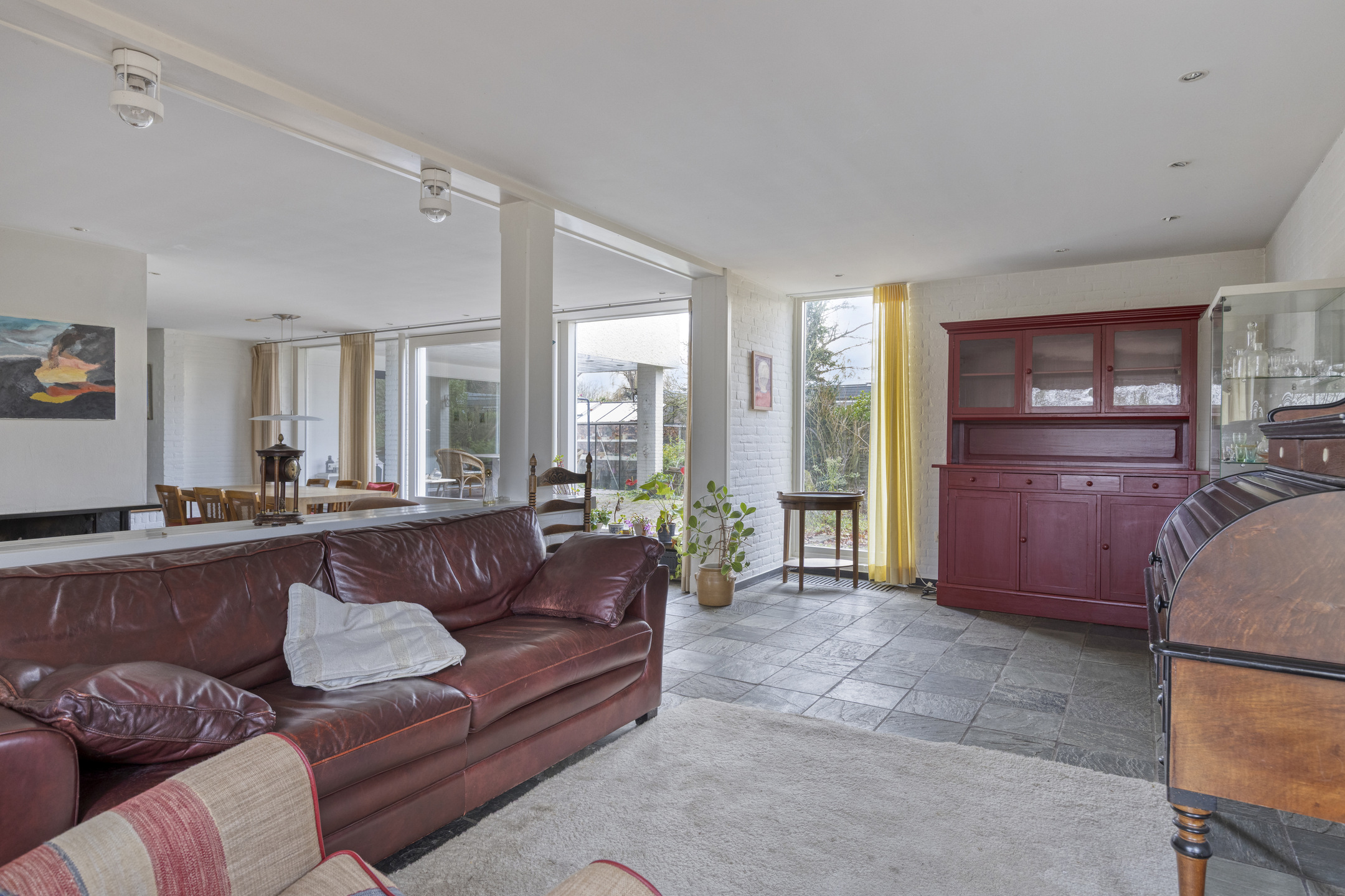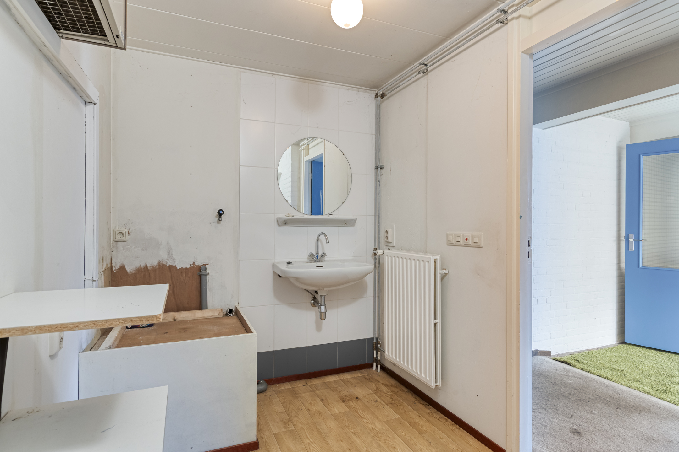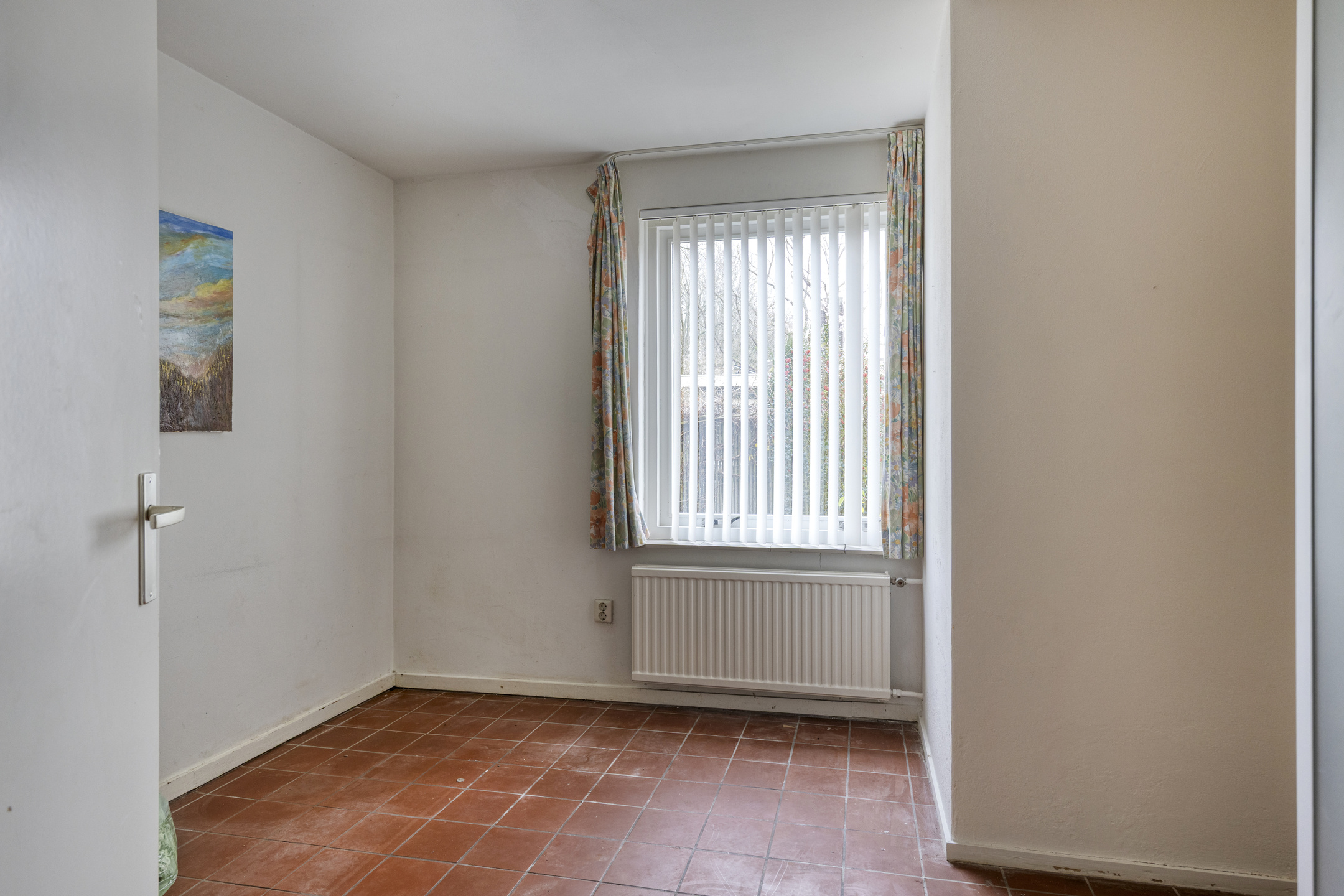 De woonkamer en keuken vormen samen een open en lichte leefruimte. Grote raampartijen zorgen voor een prettige lichtinval en bieden vanuit meerdere hoeken zicht op het groen aan de voorzijde. Aan de voorkant bevindt zich de zithoek met open haard, een fijne plek om te zitten met uitzicht op de rustige straat. Daarnaast is er een tweede zithoek, eveneens met zicht op het groen, waardoor de ruimte verschillende gebruiksmogelijkheden heeft. De eethoek ligt bij de keuken en staat via een grote schuifpui in directe verbinding met de tuin. Dit zorgt voor veel daglicht en een natuurlijke overgang tussen binnen en buiten. De keuken is compact van opzet, maar biedt volop kansen om uit te breiden of opnieuw in te delen, passend bij uw eigen wensen.