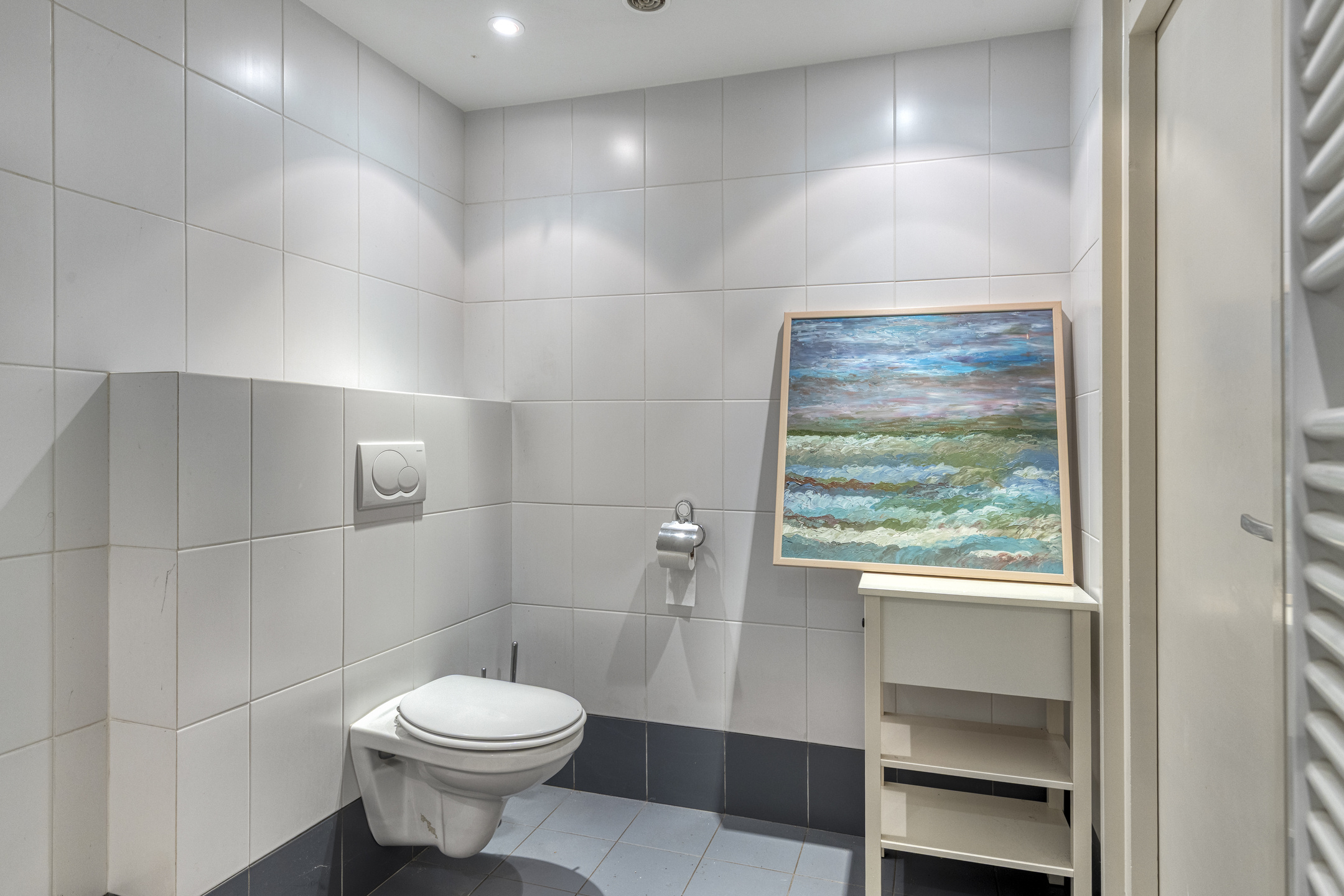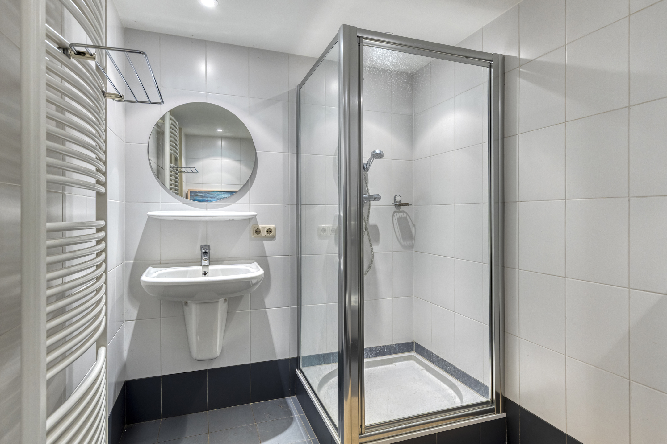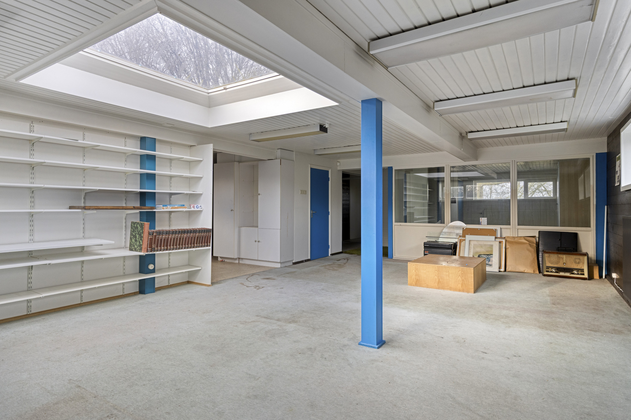 De eerste verdieping bereikt u via de trap in de hal. Hier treft u een overloop met momenteel één aparte slaapkamer en een grote open ruimte die deels is afgescheiden. Deze verdieping biedt veel potentie voor het realiseren van meerdere slaapkamers. Daarnaast is er een berging met witgoedaansluitingen en een tweede badkamer met douche, wastafel en toilet.