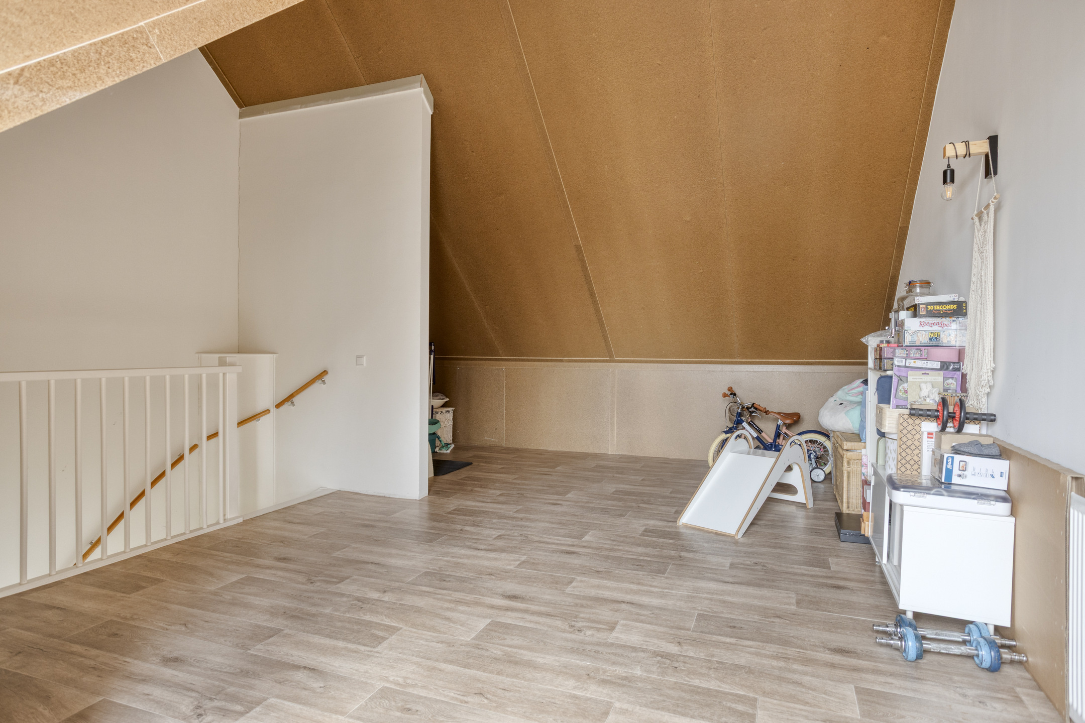 De zolder is ruim en biedt veel mogelijkheden. Hier kan eenvoudig een extra slaapkamer worden gerealiseerd. Ook is er voldoende ruimte voor extra opbergruimte. De grote ramen zorgen voor veel licht en geven de verdieping een ruimtelijk gevoel.