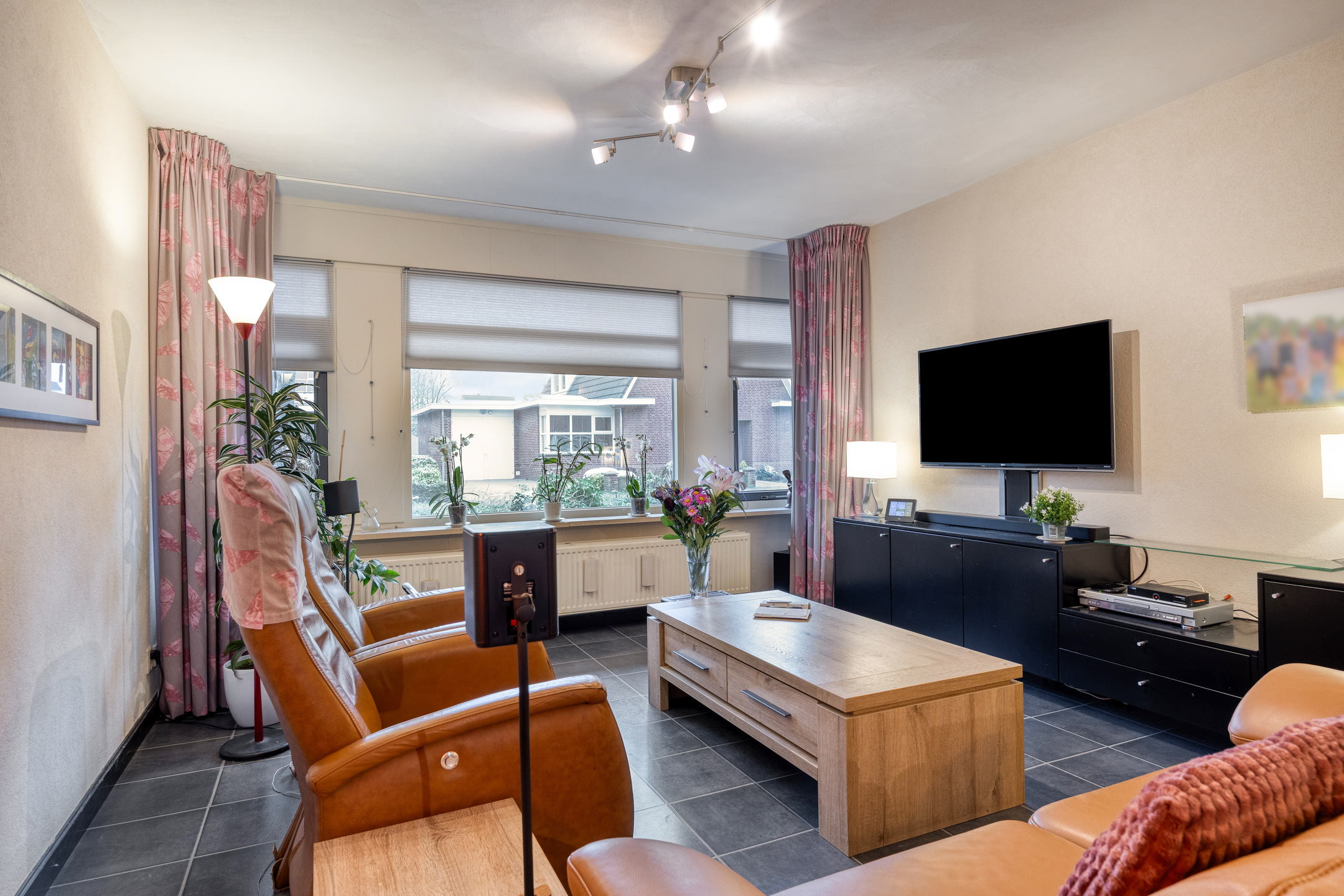 De woonkamer staat in open verbinding met de keuken. Aan de voorzijde is een fijne zithoek met zicht op de straat. Hier is plek voor een ruime bank. Aan de achterzijde is ruimte voor een grote eettafel. Aan de voorzijde is HR++ beglazing geplaatst. Een rookkanaal geeft de optie tot het plaatsen van een sfeerhaard of kachel.