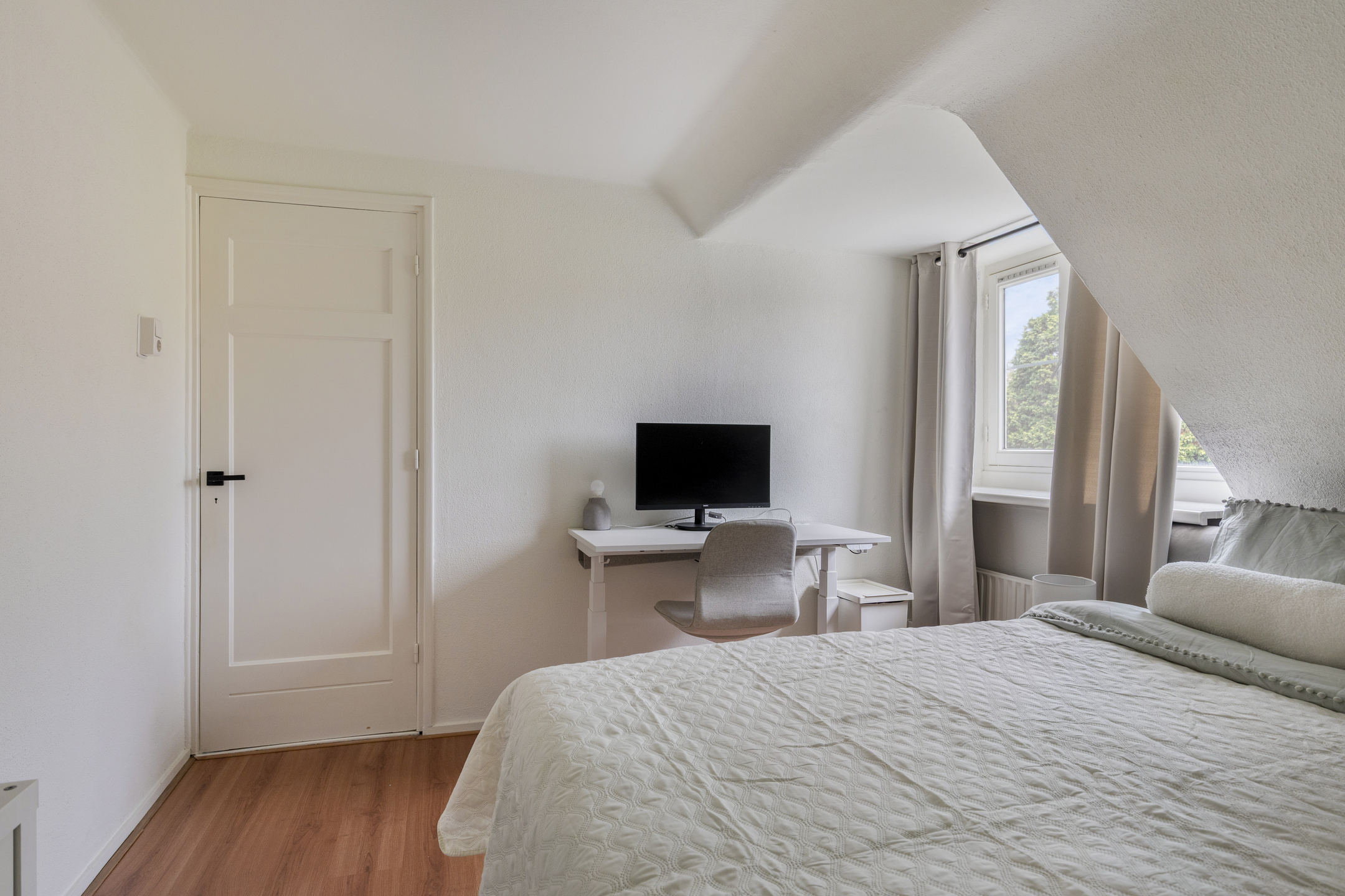 De woning beschikt over drie slaapkamers. Aan de achterzijde ligt een ruime kamer met een ingebouwde kast en extra lichtinval dankzij de dakkapel.