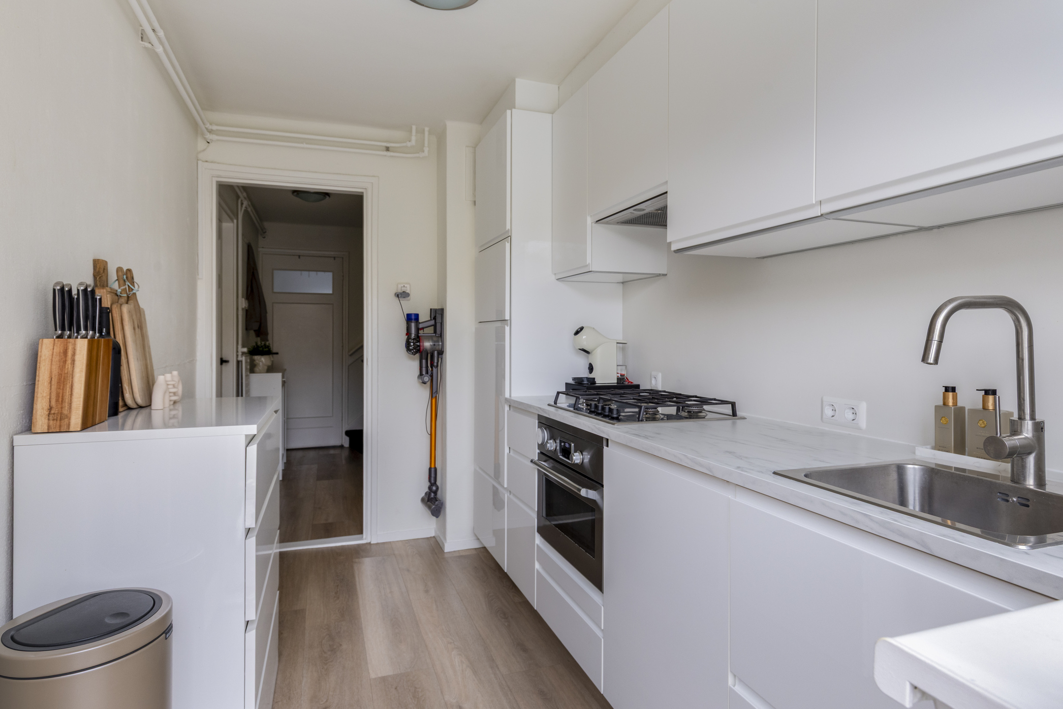 Vanuit de keuken loop je direct het balkon op. De deur kan open voor frisse lucht of om even te genieten van het buitengevoel tijdens het koken.