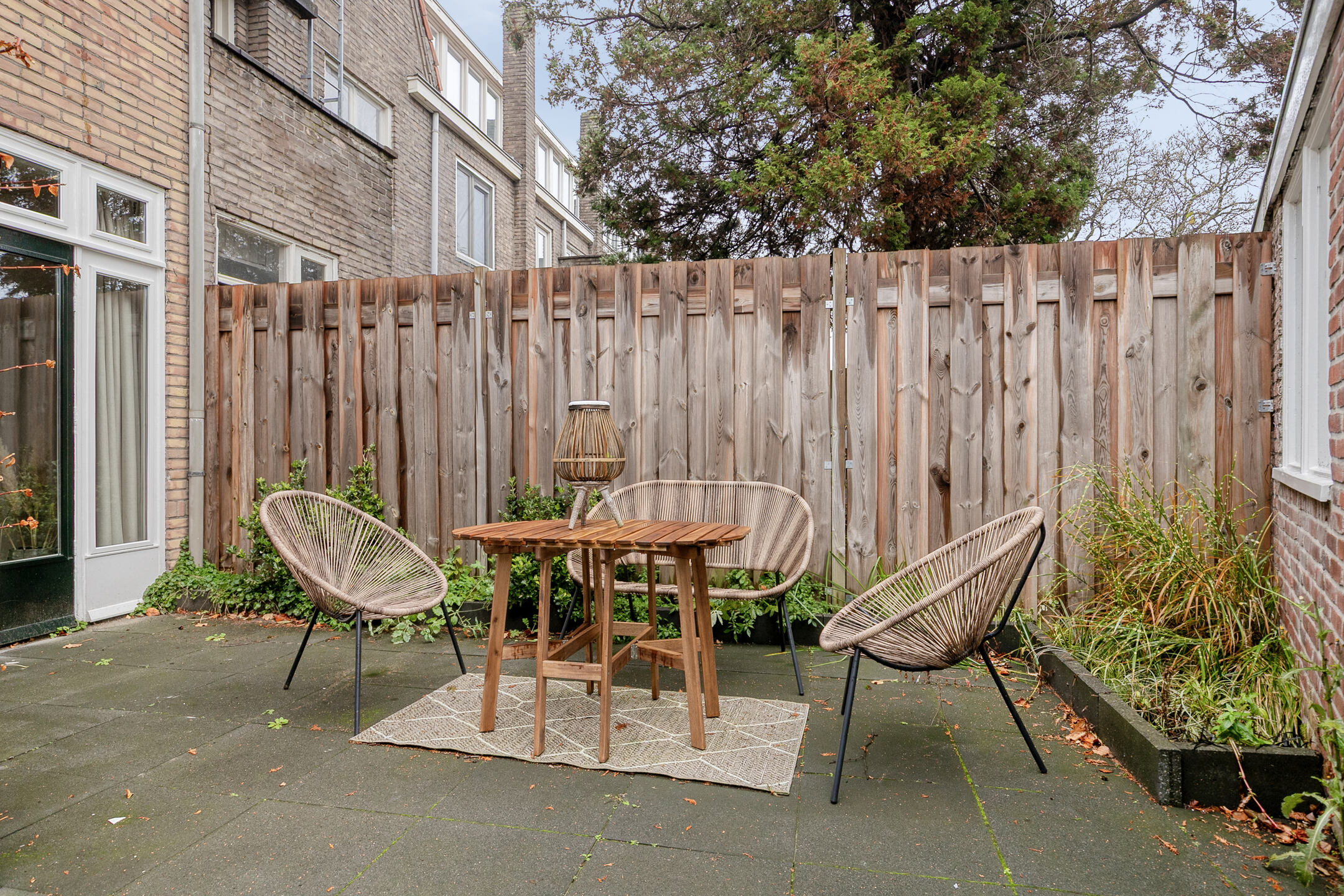 De achtertuin is aangelegd met tegels en daardoor onderhoudsvriendelijk. De stenen berging biedt genoeg ruimte voor fietsen, een motor of tuingereedschap. Via de achterom loop je makkelijk naar de straat. Er is genoeg plek voor een zithoek om te genieten van lange avonden buiten.