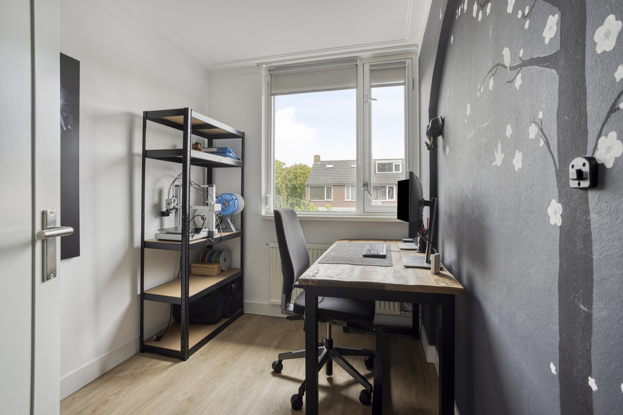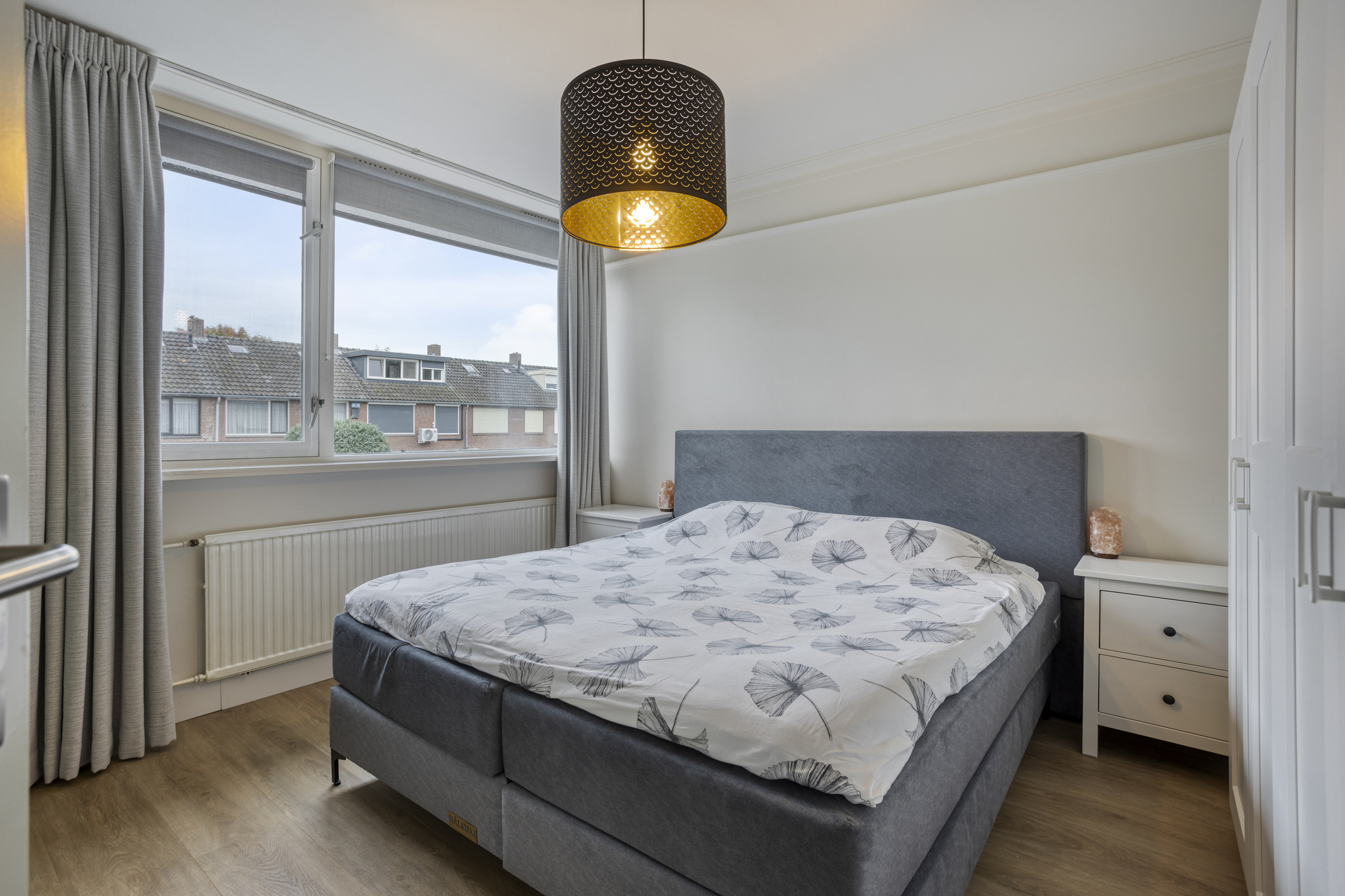 De hoofdslaapkamer aan de achterzijde is ruim genoeg voor een groot bed en een kledingkast. De tweede kamer is lichter en kleiner, nu ingericht als werkkamer maar ook heel geschikt als kinderkamer. De derde slaapkamer aan de voorzijde is verrassend ruim en biedt uitzicht op de voortuin en het veldje. Hier heb je volop mogelijkheden om de kamers naar eigen wens in te richten.