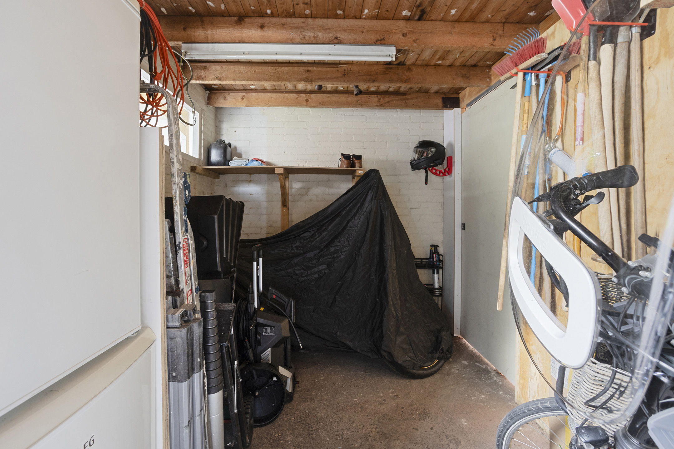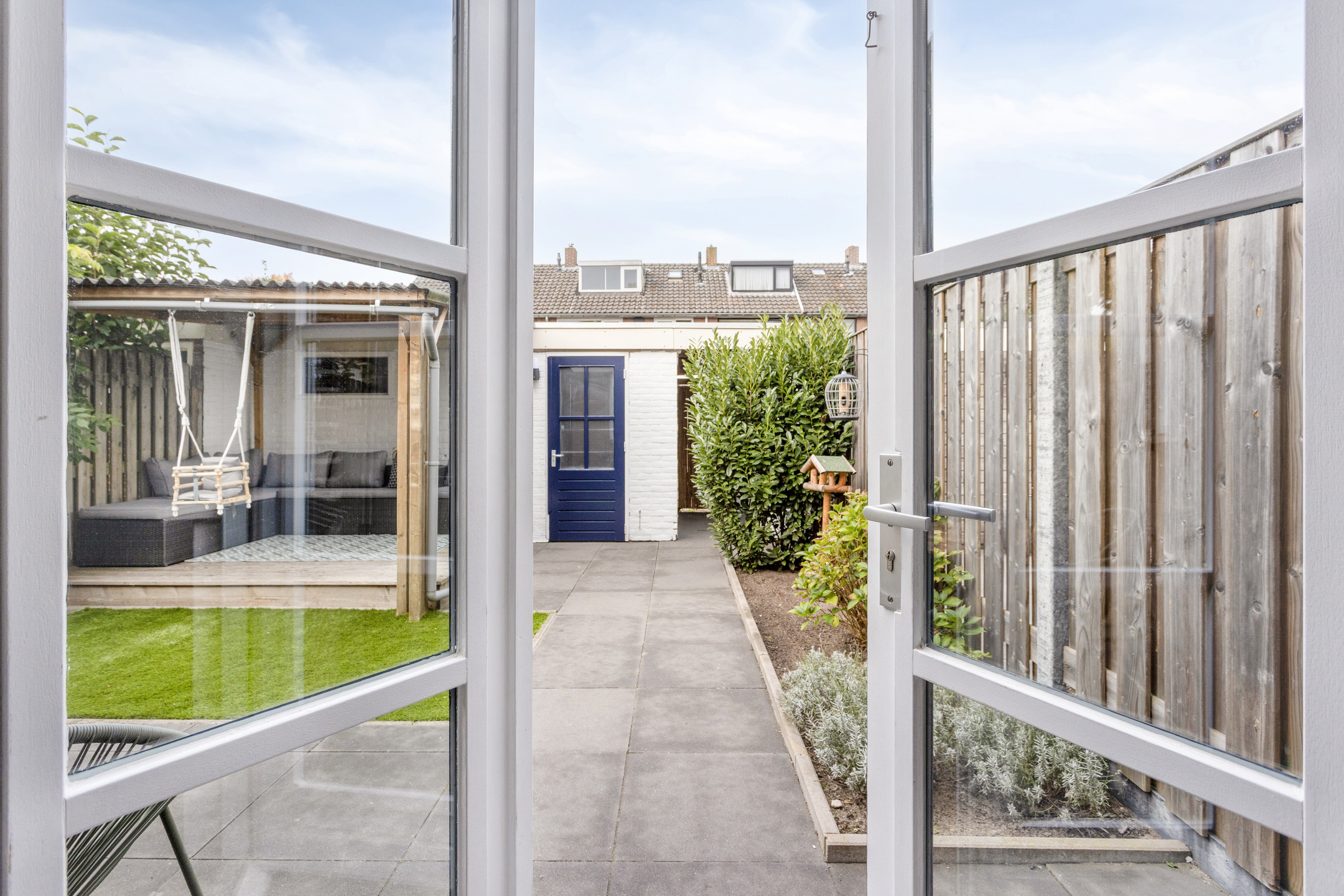 De achtertuin is een plek om te genieten. Via de openslaande deuren stap je direct het terras op. De tuin is netjes aangelegd met tegels, groen, kunstgras, een luifel aan de achtergevel en een gezellige overkapping. Op warme zomerdagen kun je hier barbecueën en op koelere avonden onder de overkapping met vrienden borrelen. De stenen berging achterin is praktisch voor fietsen en tuingereedschap en voorzien van een ruimte schuifdeur waardoor je hier makkelijk een motor kunt parkeren. Dankzij de achterom loop je gemakkelijk naar de winkels of pak je snel de fiets.