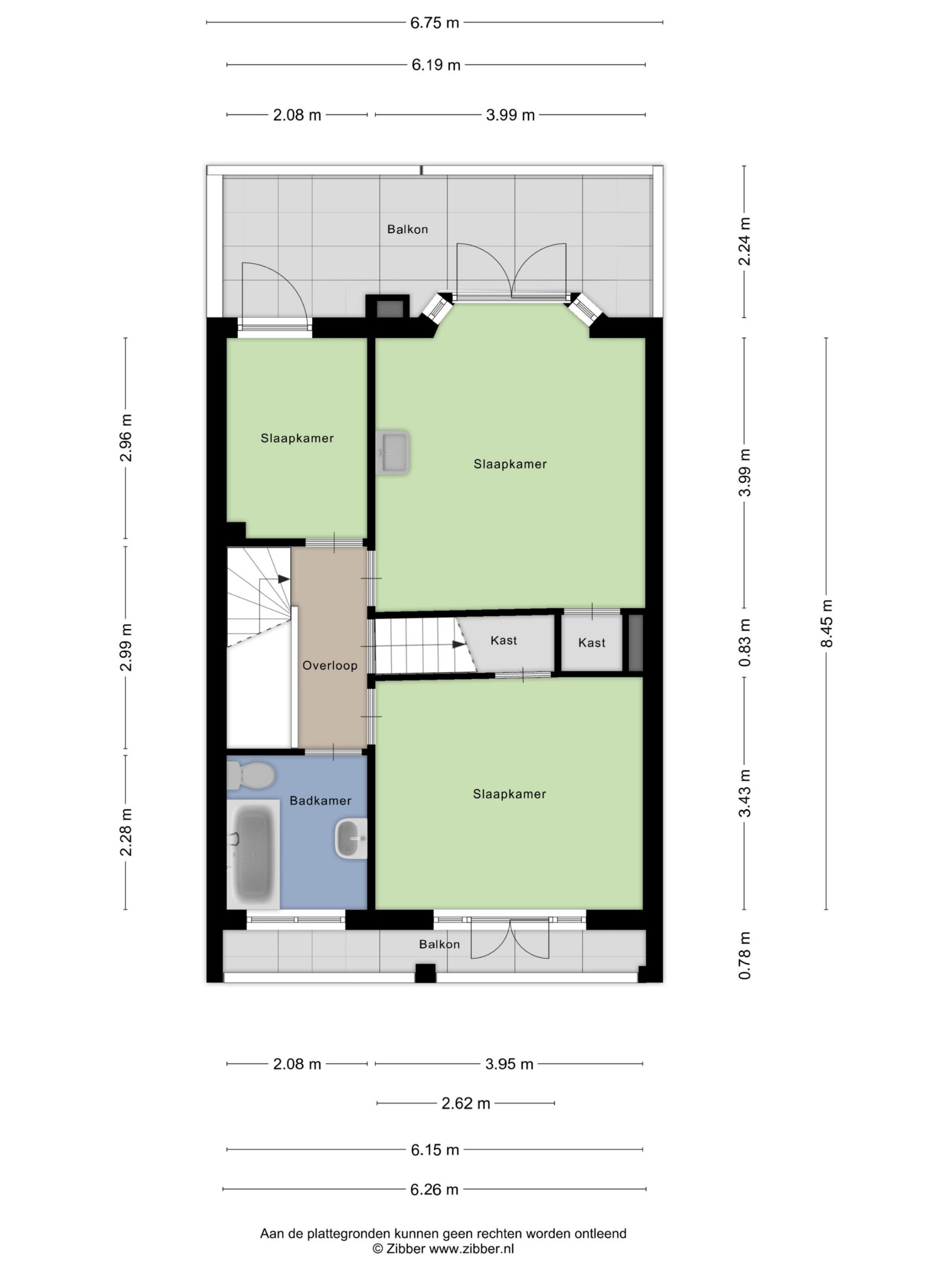 Twee slaapkamers zijn aan de achterzijde gelegen en een slaapkamer is aan de voorzijde gelegen.