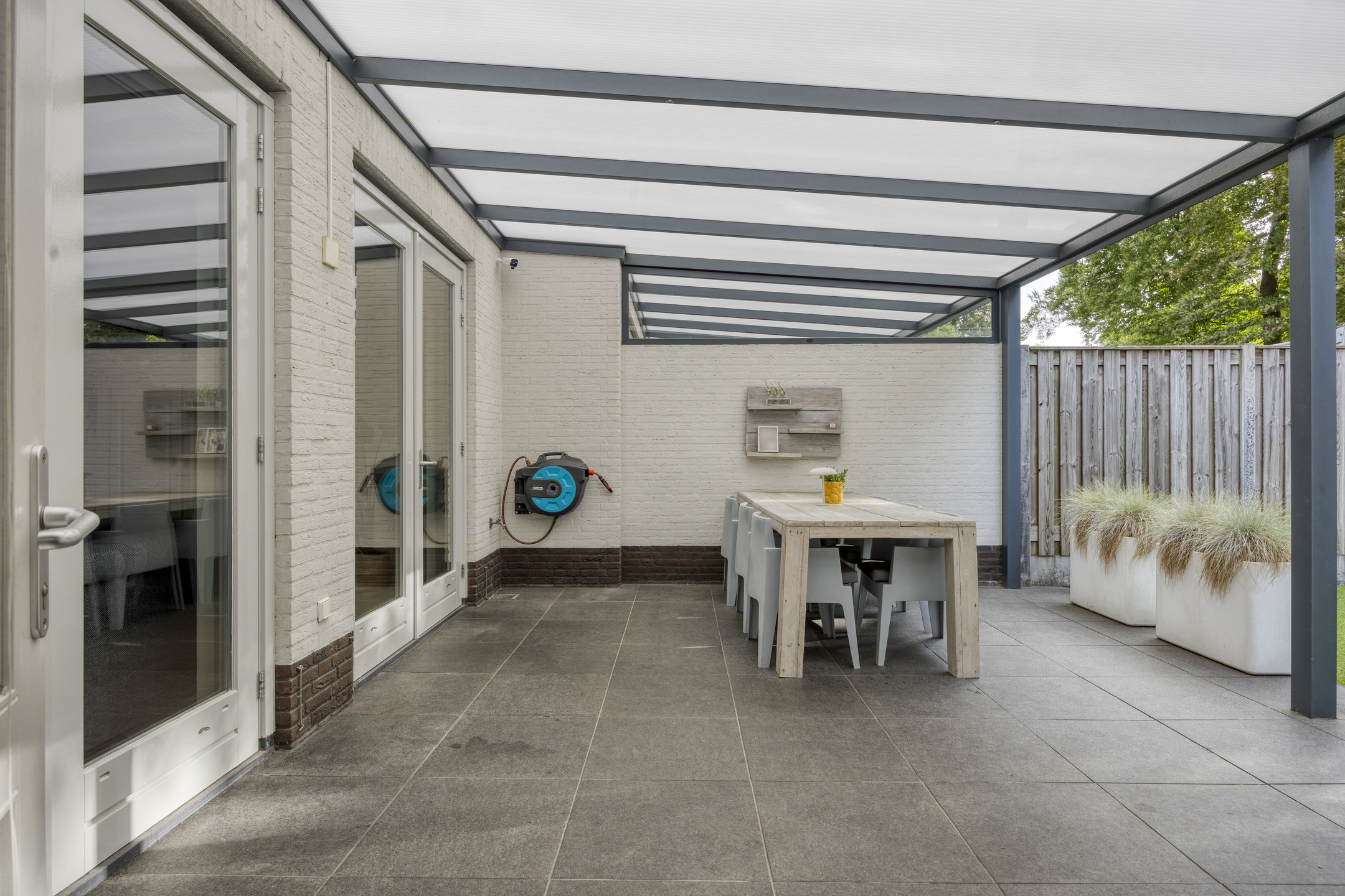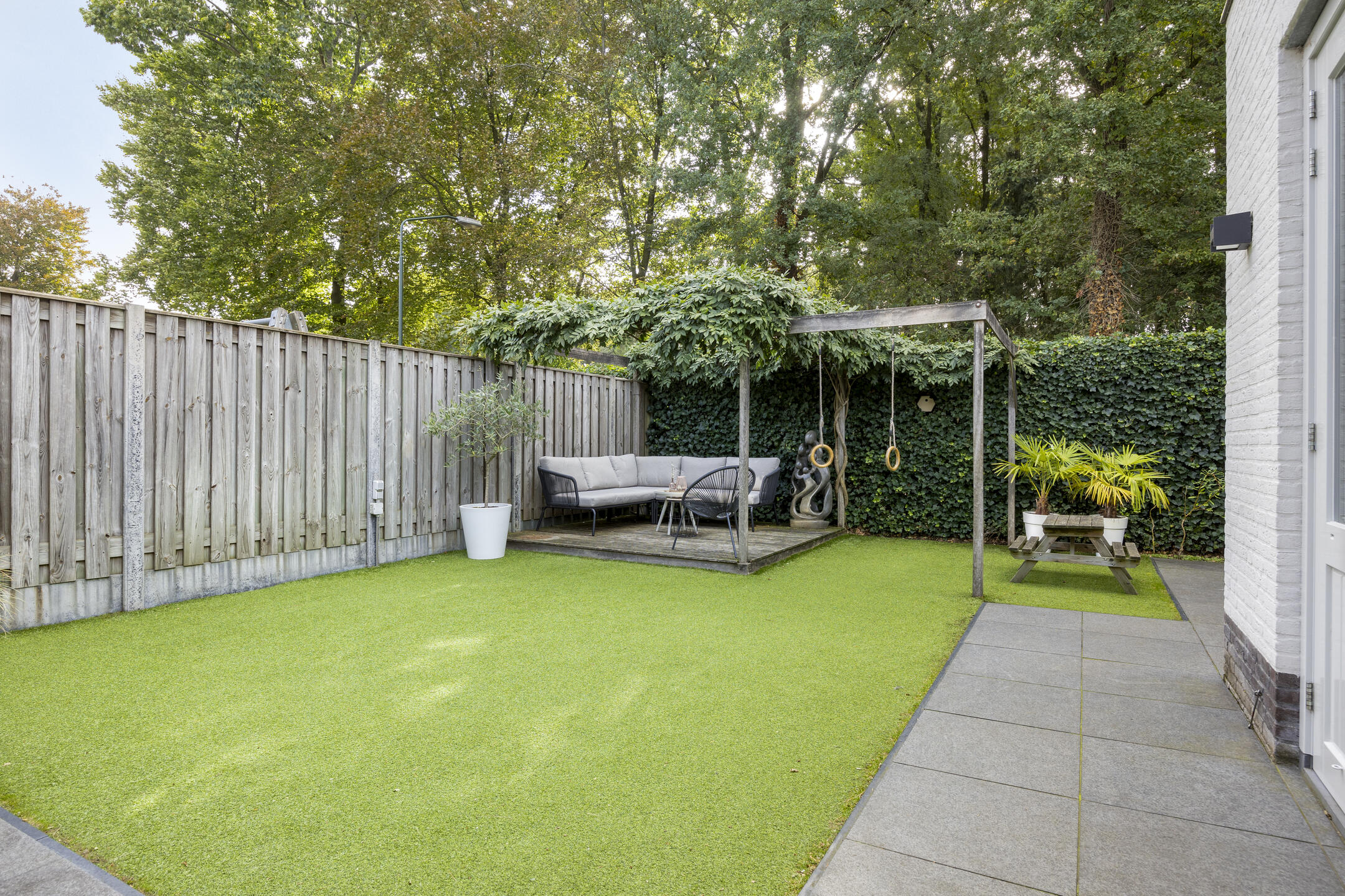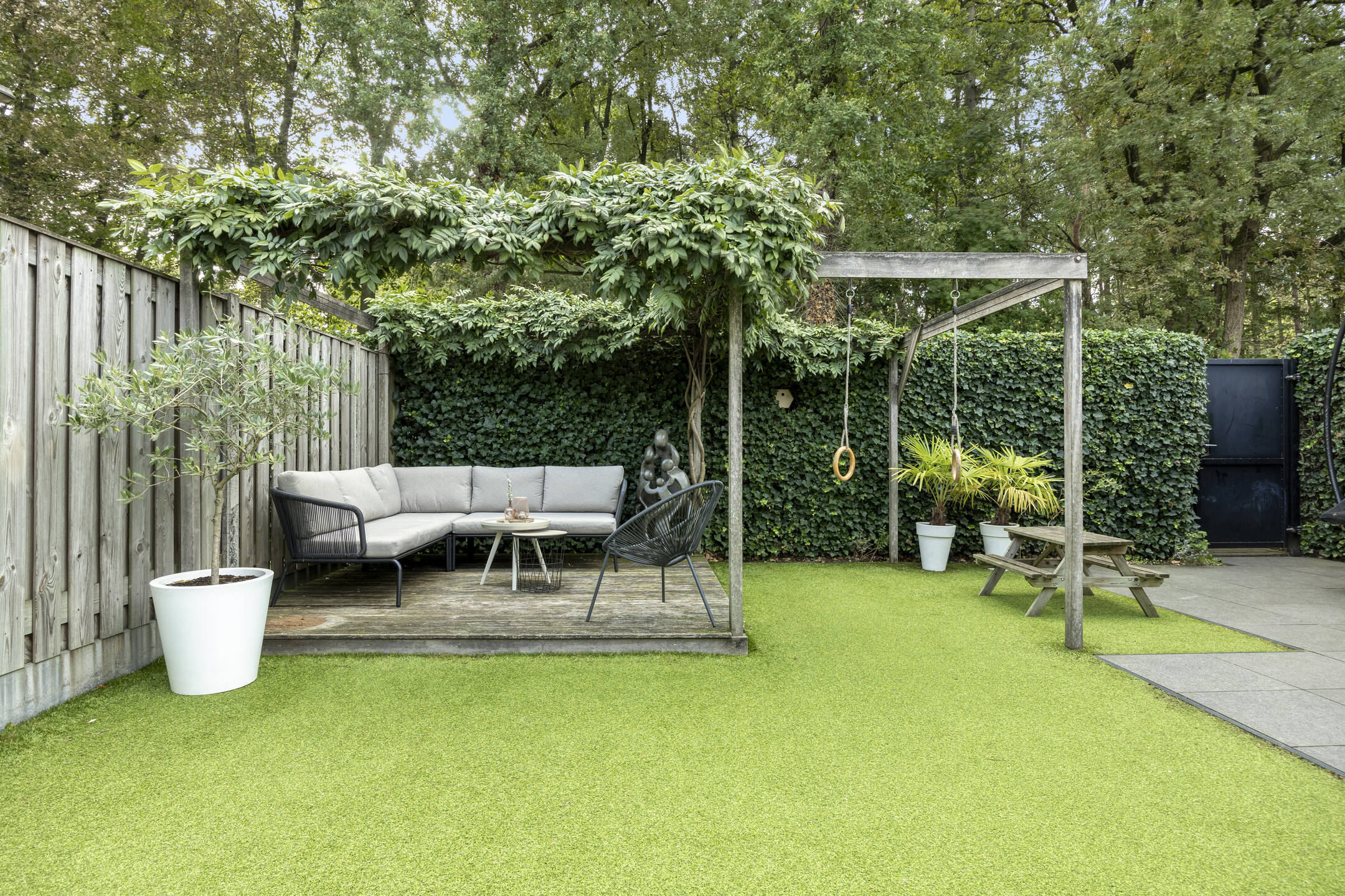 De tuin is een heerlijke plek om te genieten van het buitenleven. Direct aan de woning is een grote overkapping over de gehele breedte, waardoor je hier een overdekt terras hebt. Verder is de tuin netjes aangelegd met een kunstgrasgazon, een looppad naar de achterom en achterin een zitplek op een vlonder en een extra betegeld terras. De groene erfafscheiding en de nette schutting zorgen voor veel privacy. Door de tuin zijn ook meerdere elektriciteitspunten aanwezig.