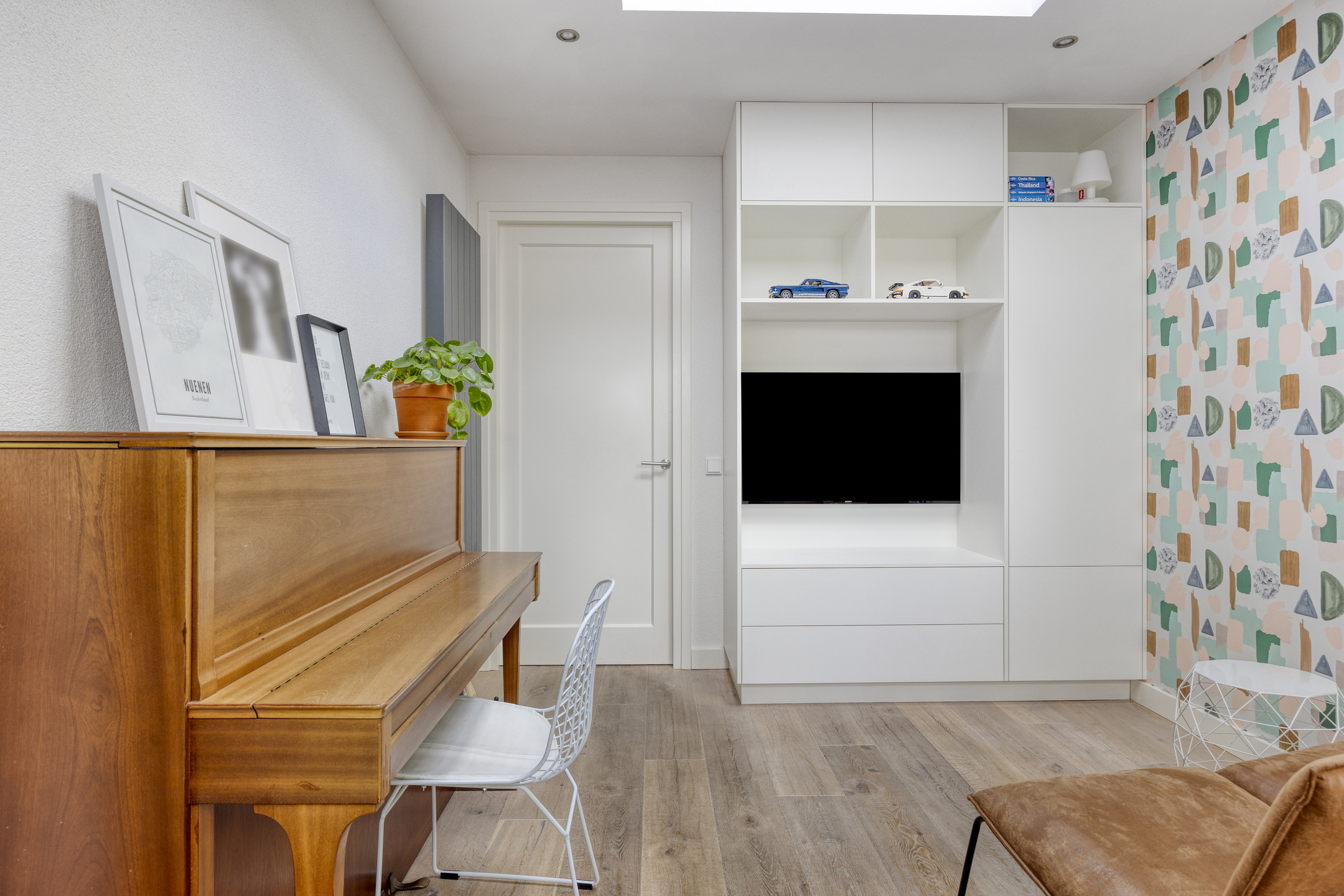 Op de tweede verdieping word je verrast door de ruimte. Op de voorzolder is veel bergruimte gecreëerd met inbouwkasten onder de schuine kanten. Je vindt hier ook een fonteintje en een airco. Er zijn op deze verdieping twee extra kamers die je flexibel kunt gebruiken, bijvoorbeeld als slaapkamer, werkkamer of hobbyruimte.
