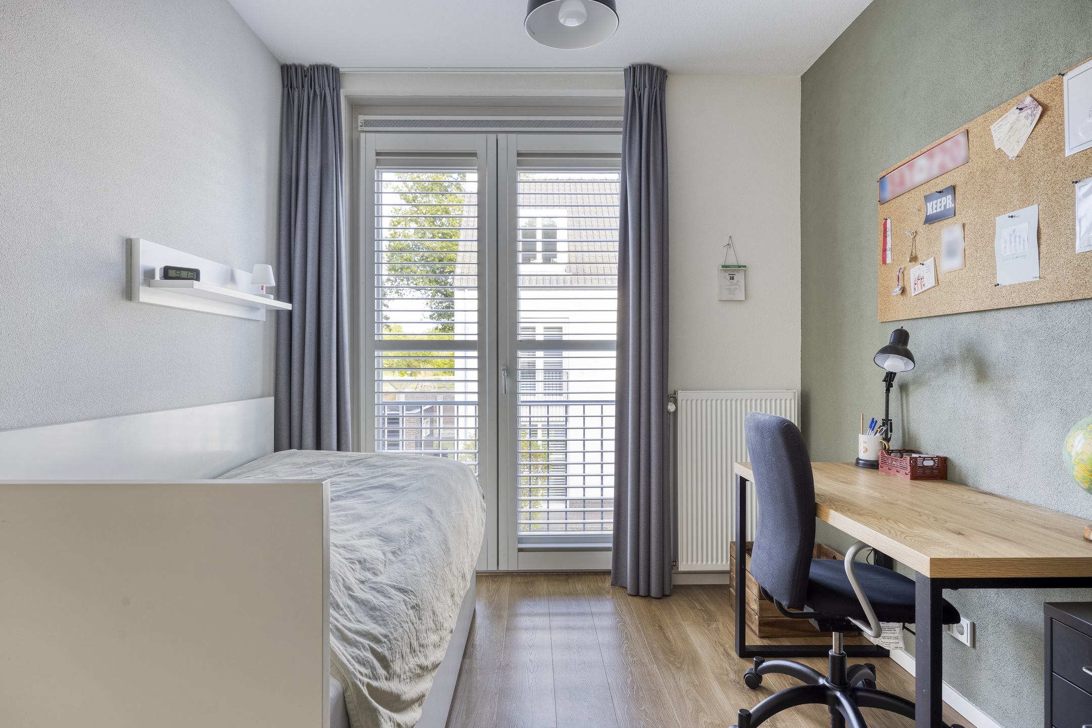 De slaapkamers zijn allemaal goed van formaat en praktisch in te delen. De kamer aan de achterzijde is ruim van formaat en voorzien van fijne draaikiepramen met raambekleding. Aan de voorzijde bevinden zich twee ruime kamers met veel natuurlijk licht. Beide kamers hebben stijlvolle shutters; één kamer beschikt daarnaast over een Frans balkon met draaikiepdeur, terwijl de andere kamer is uitgerust met draaikiepramen. Dankzij hun goede afmetingen zijn deze kamers uitstekend geschikt als bijvoorbeeld kinderkamers of werkkamers.