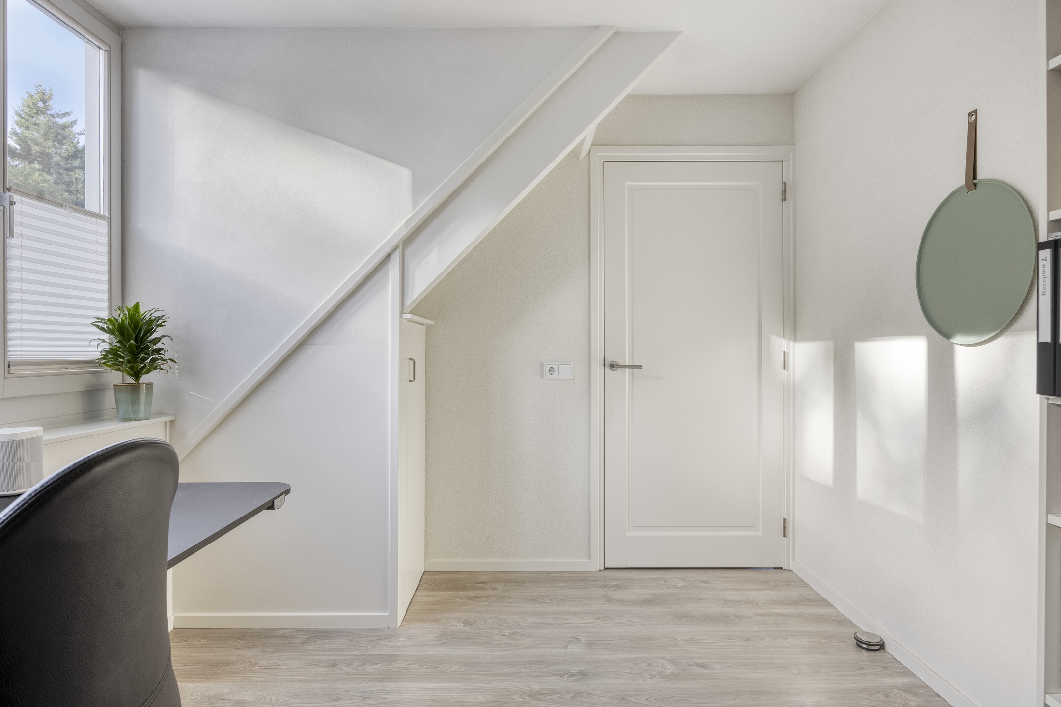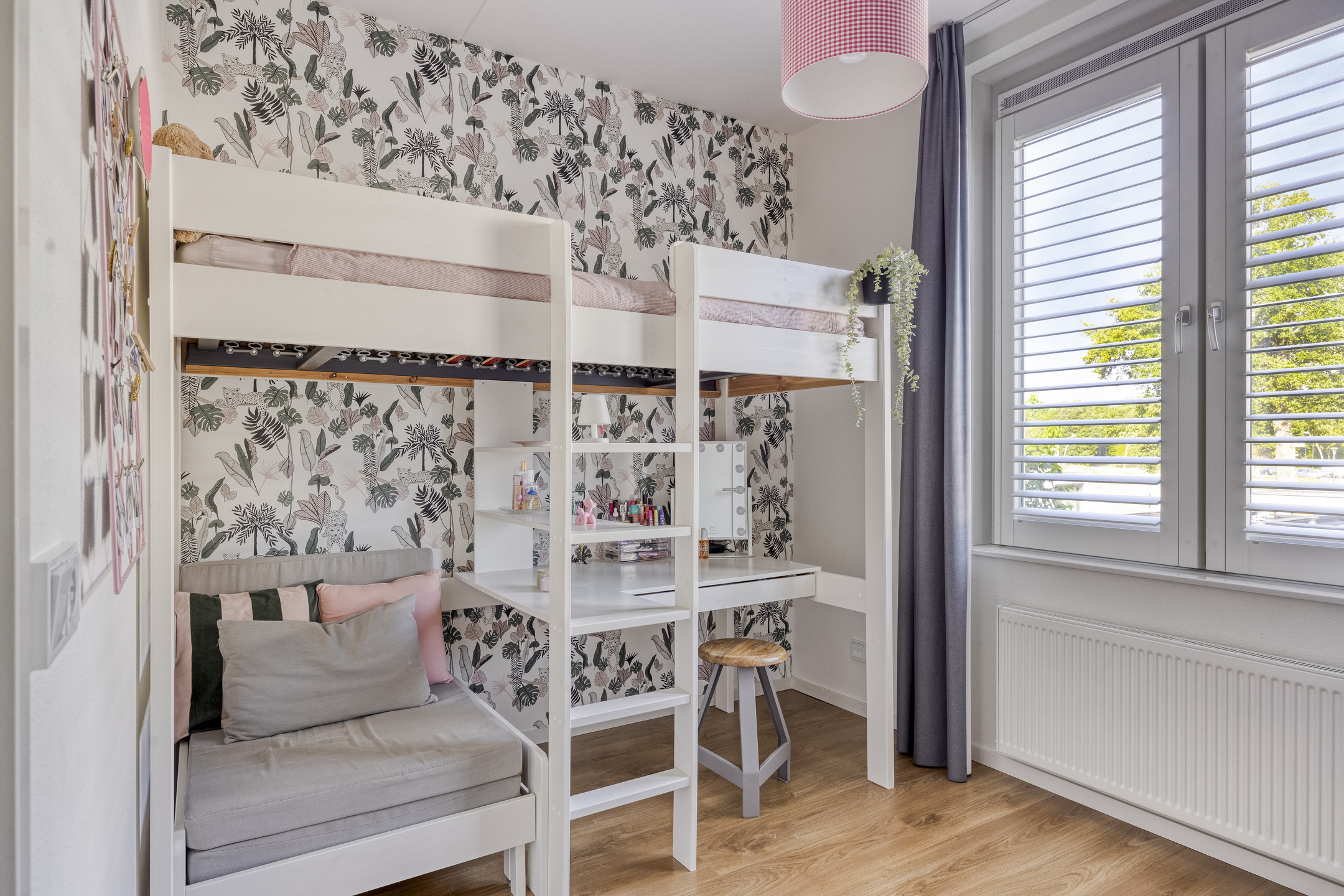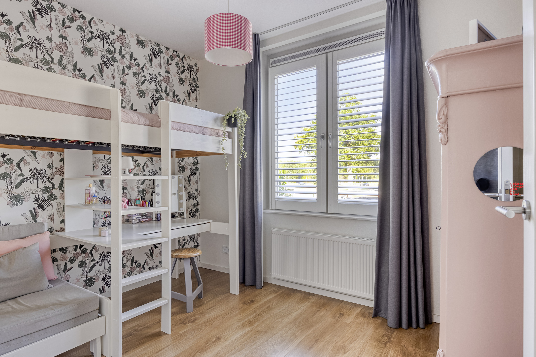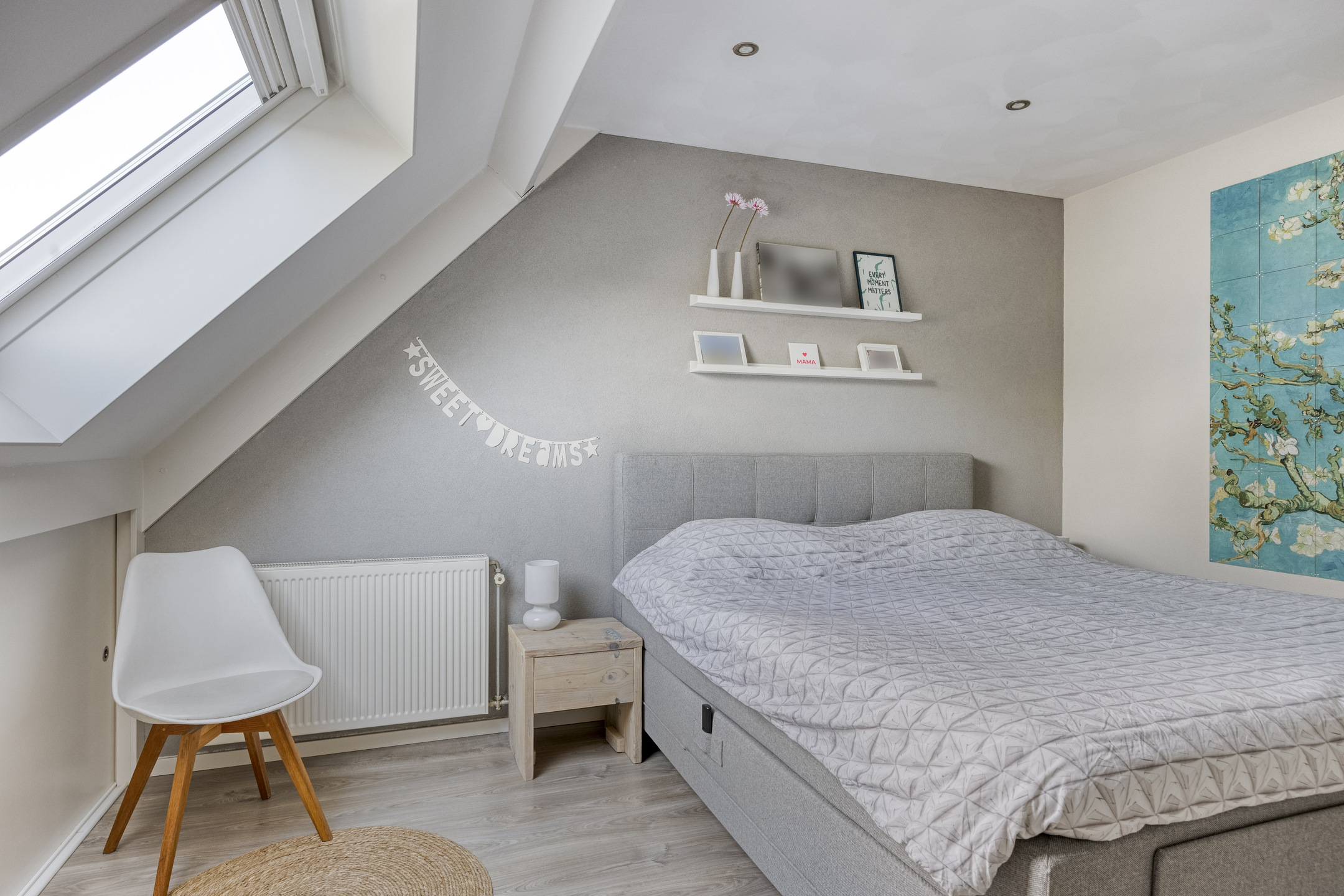 De grootste kamer ligt aan de voorzijde en beschikt over een Velux dakraam met zonwering, extra bergruimte onder de schuine kanten én een inloopkast. Vanuit hier heb je ook toegang tot de vliering, ideaal voor nog meer opbergruimte. De tweede kamer is extra ruim en licht dankzij een grote dakkapel met vier ramen, waarvan twee draaikiepramen. Daarnaast heeft deze kamer een ingebouwde kast, waardoor de ruimte optimaal wordt benut.