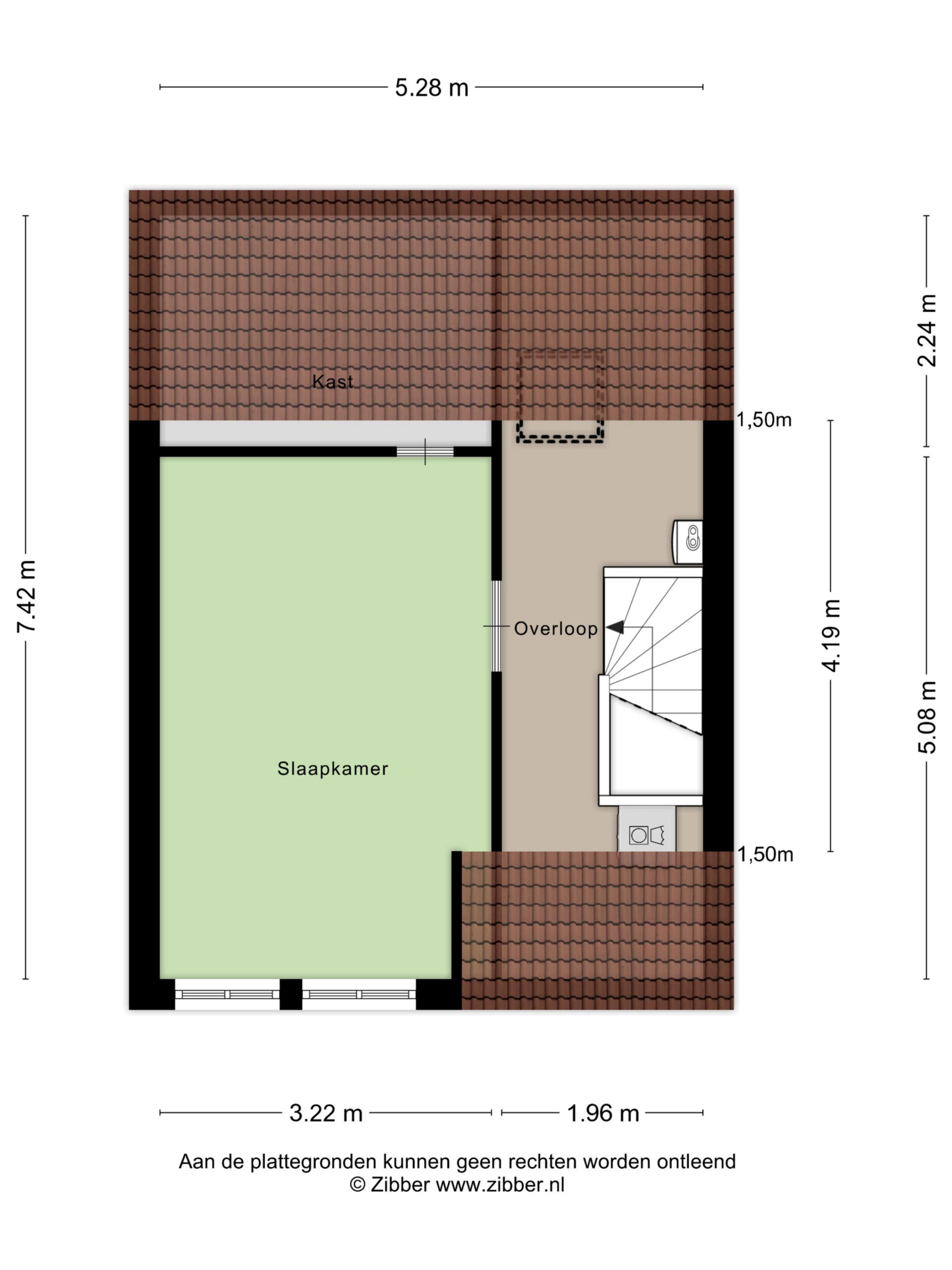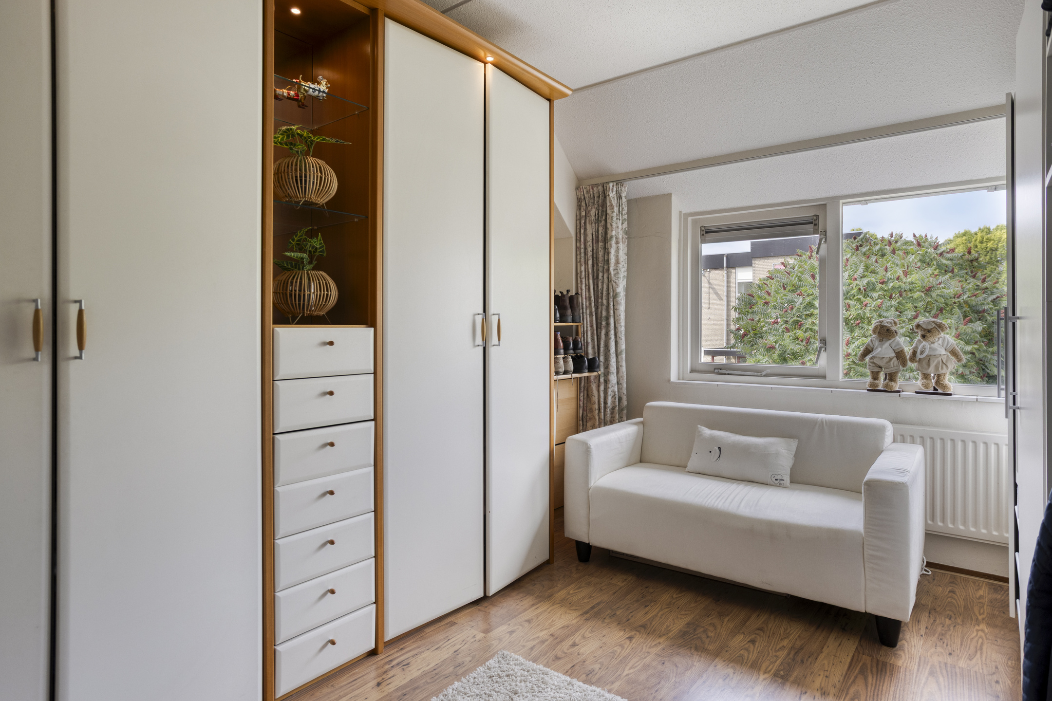 De zolderverdieping bestaat uit een overloop en een vierde slaapkamer met dakkapel en vaste kastruimte. Deze kamer is ook geschikt als werk- of hobbyruimte. Op de overloop vind je de aansluitingen voor wasmachine en droger, de cv-installatie en extra bergruimte voor bijvoorbeeld seizoensspullen of koffers.