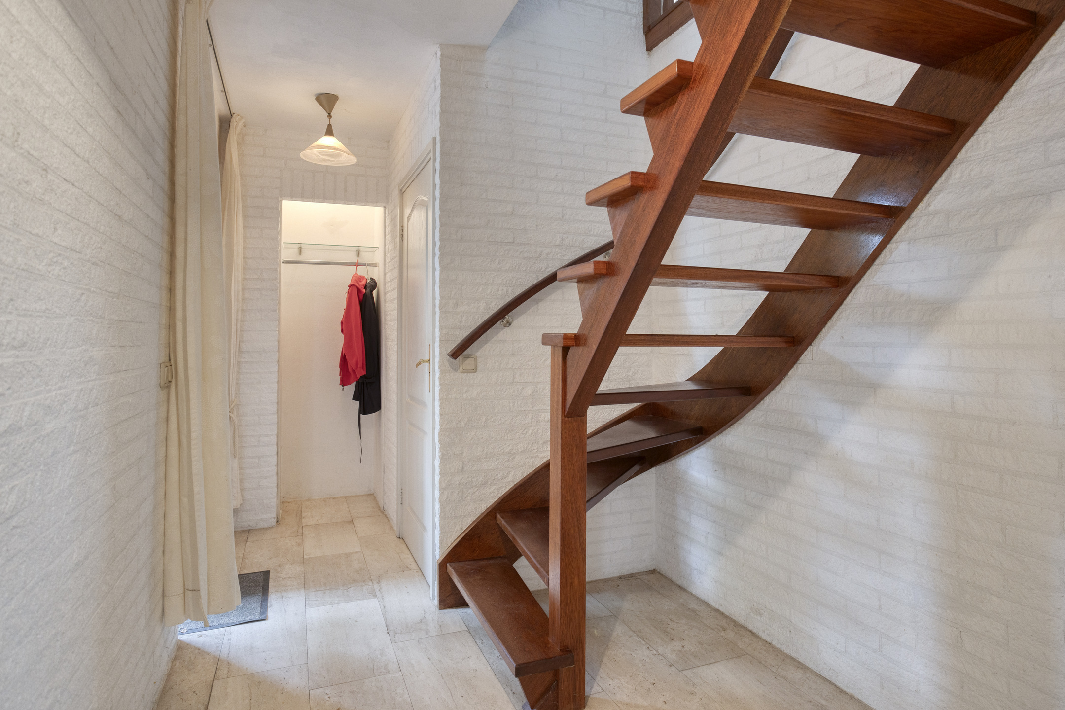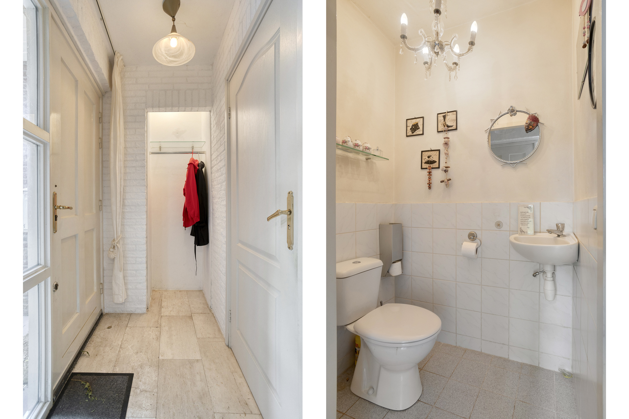 Via de voordeur kom je binnen in de ruime hal met een handige garderobenis. Hier vind je ook de trapopgang, de doorgang naar de woonkamer en het toilet. Het toilet is half betegeld en voorzien van een staand closet en fonteintje.