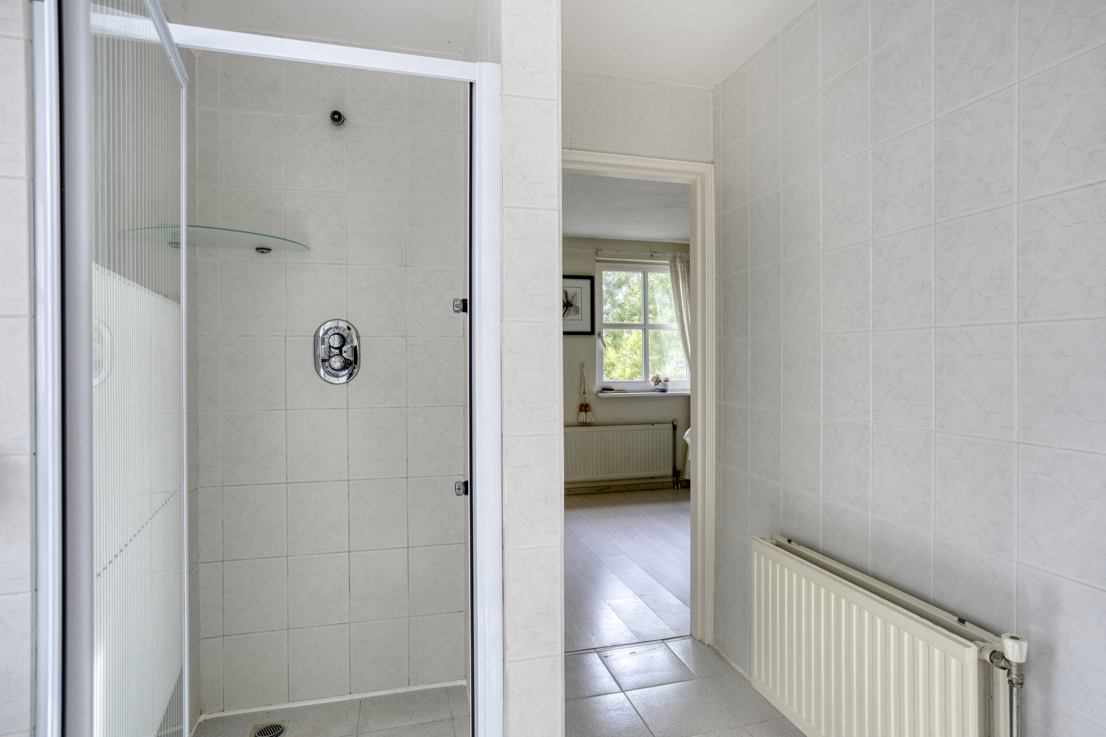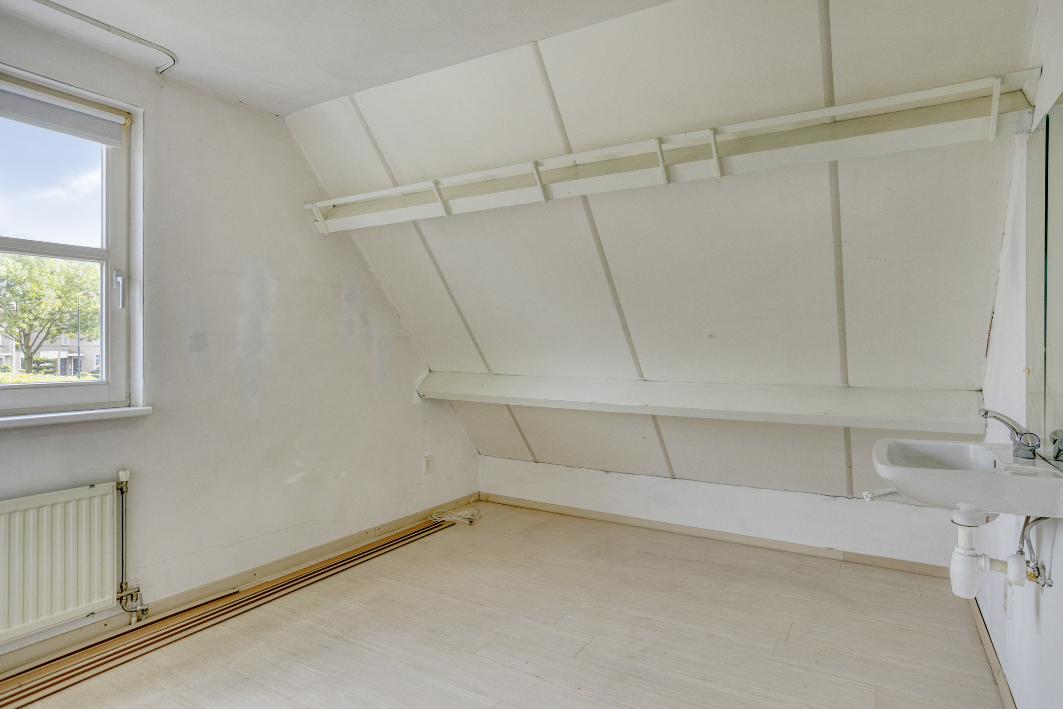 Aan de voorzijde ligt de hoofdslaapkamer: een zeer royale kamer met ingebouwde linnenkast en twee draaikiepramen. Vanuit hier heb je een prachtig uitzicht over het groen tegenover de woning en bovendien directe toegang tot de badkamer en suite. De tweede slaapkamer ligt aan de zijkant van de woning en is compact maar praktisch ingedeeld, met een draaikiepraam en een eigen fonteintje. Aan de achterzijde bevindt zich de derde slaapkamer, eveneens compact van formaat en daardoor ideaal als kinderkamer of werkkamer. De vierde slaapkamer ligt aan de andere zijkant en is juist bijzonder ruim dankzij een dakkapel en een dakraam. Deze kamer leent zich uitstekend als tweede ouderslaapkamer, maar ook als royale hobbyruimte.