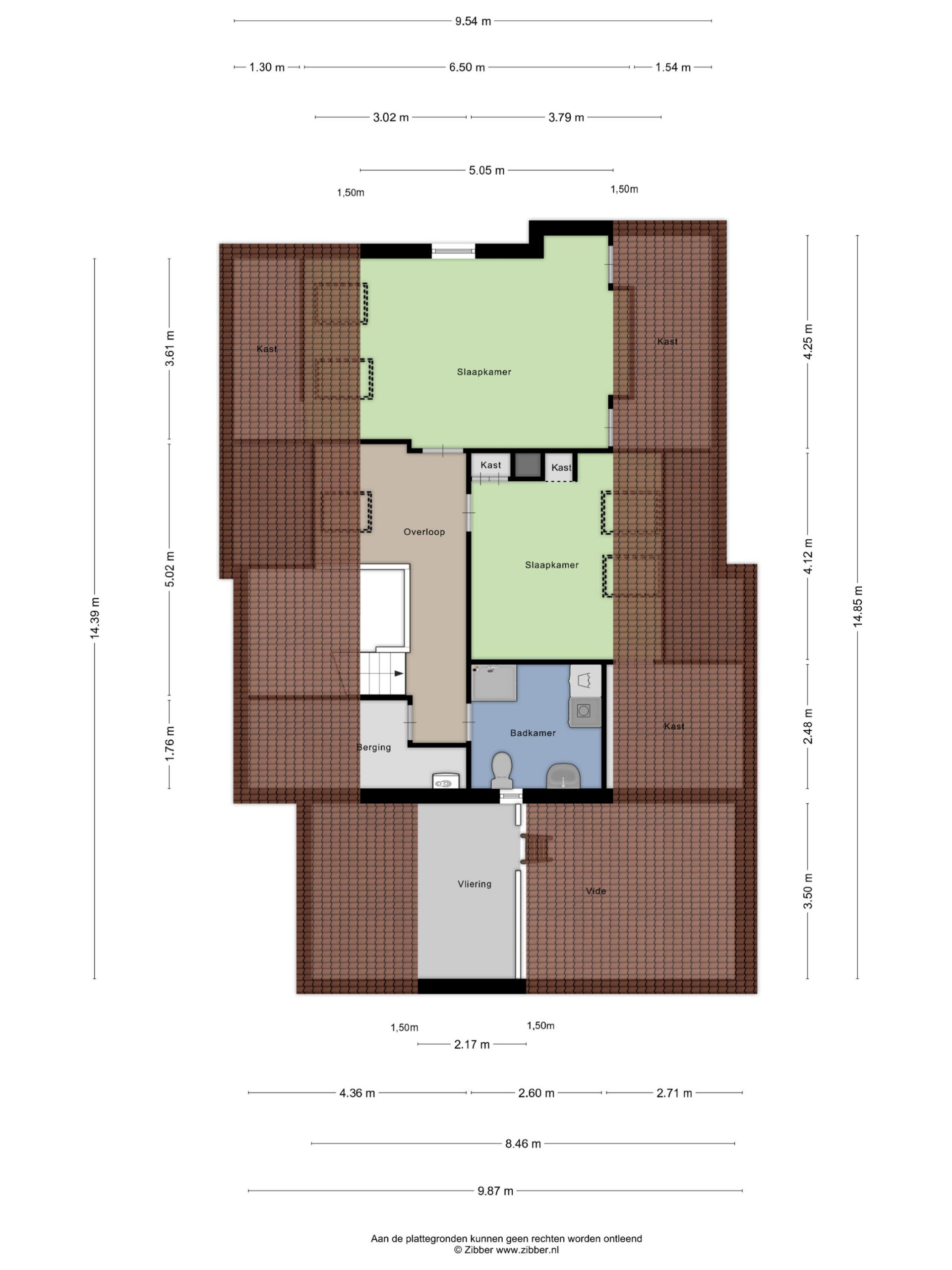 De tweede slaapkamer bevindt zich aan de zijkant van de woning en strekt zich uit over de gehele lengte. Met twee Velux-dakramen aan de voorzijde en een extra raam aan de zijkant geniet deze kamer van volop daglicht. Ook hier is voldoende ruimte voor een groot tweepersoonsbed en ruime kastruimte.