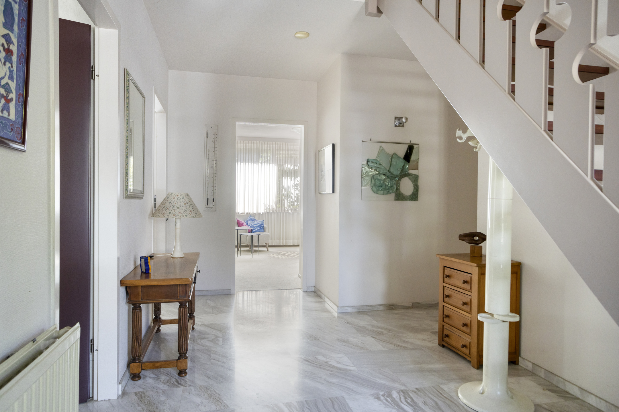 Bij binnenkomst aan de Serlioweg 5 word je direct verwelkomd door een ruime hal met een lichte, nette natuurstenenvloer. Hier is voldoende plek voor een garderobe en vind je toegang tot diverse vertrekken van de woning. Vanuit de hal bereik je de woonkamer, keuken, slaapkamer met badkamer en suite, de bijkeuken en het separate toilet.