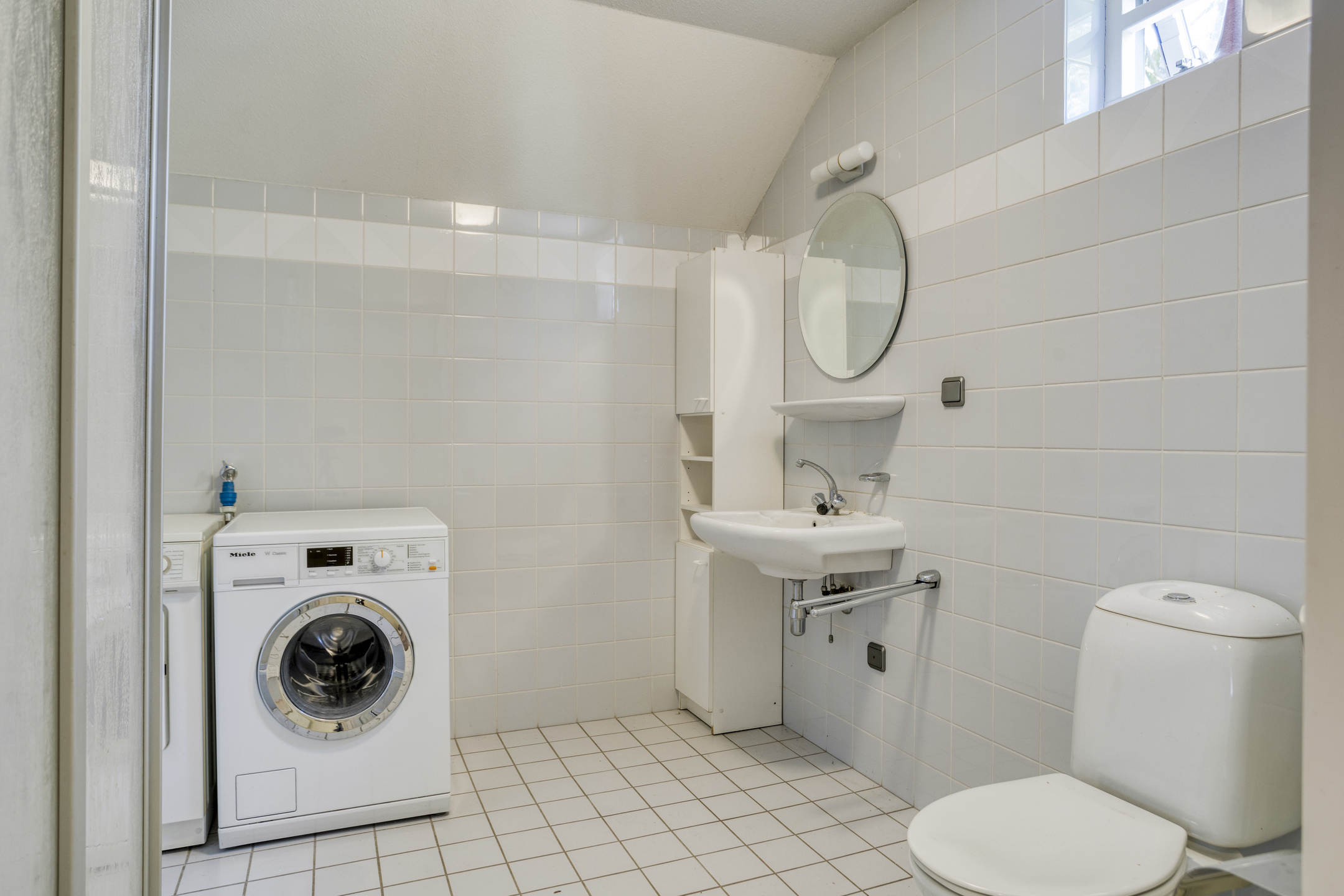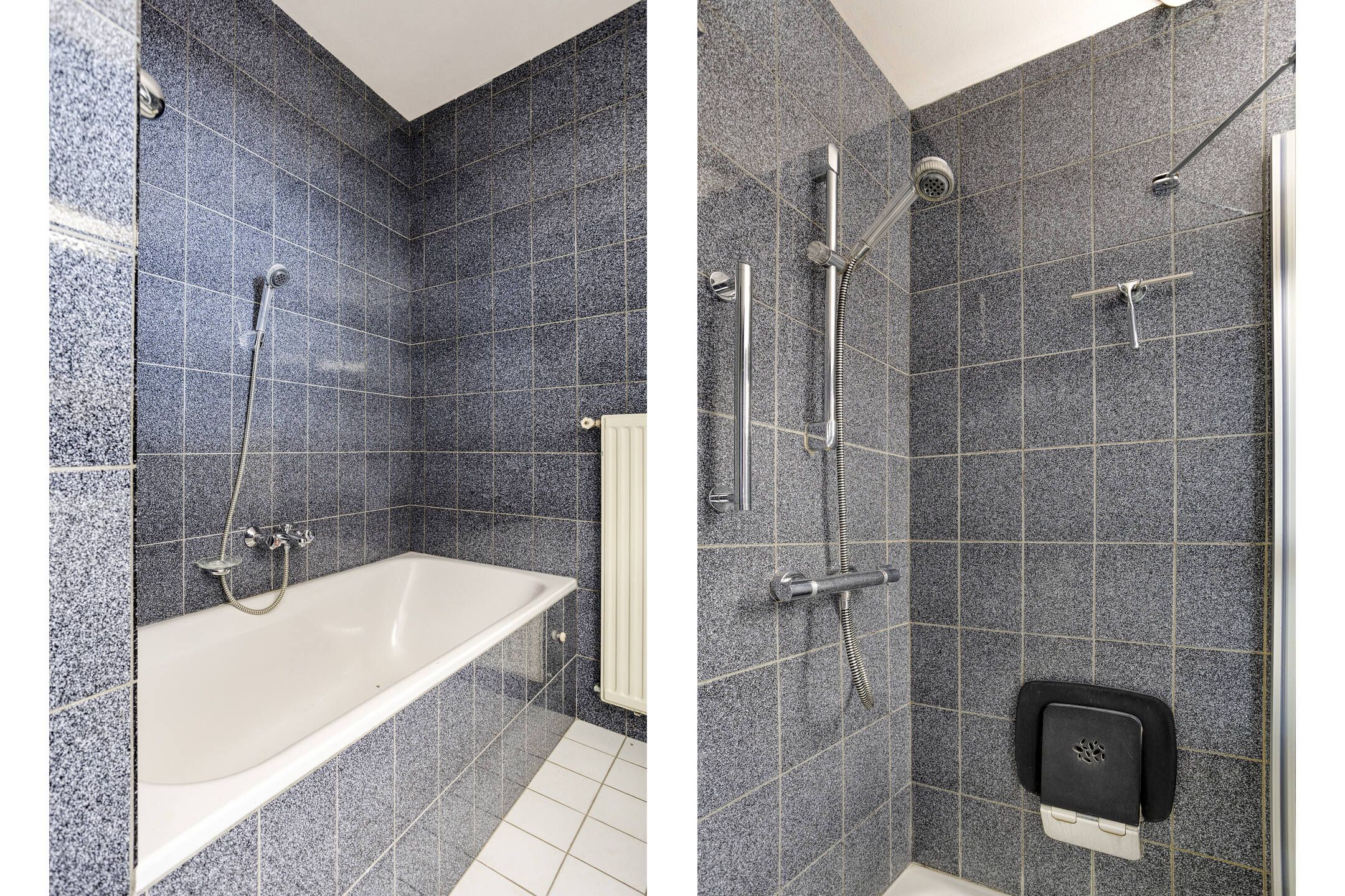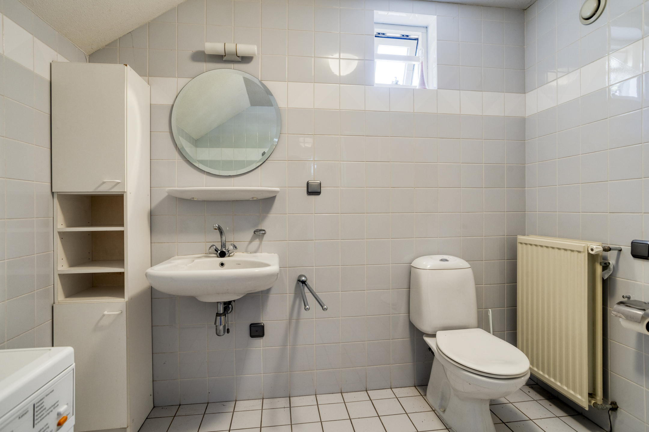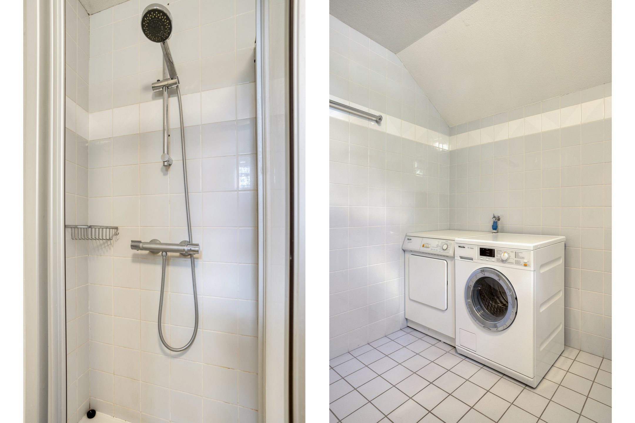 De badkamer op deze verdieping is netjes en licht afgewerkt, voorzien van een douche, wastafel en toilet – praktisch en comfortabel ingericht voor dagelijks gebruik. Hier bevinden zich ook de witgoed aansluitingen.