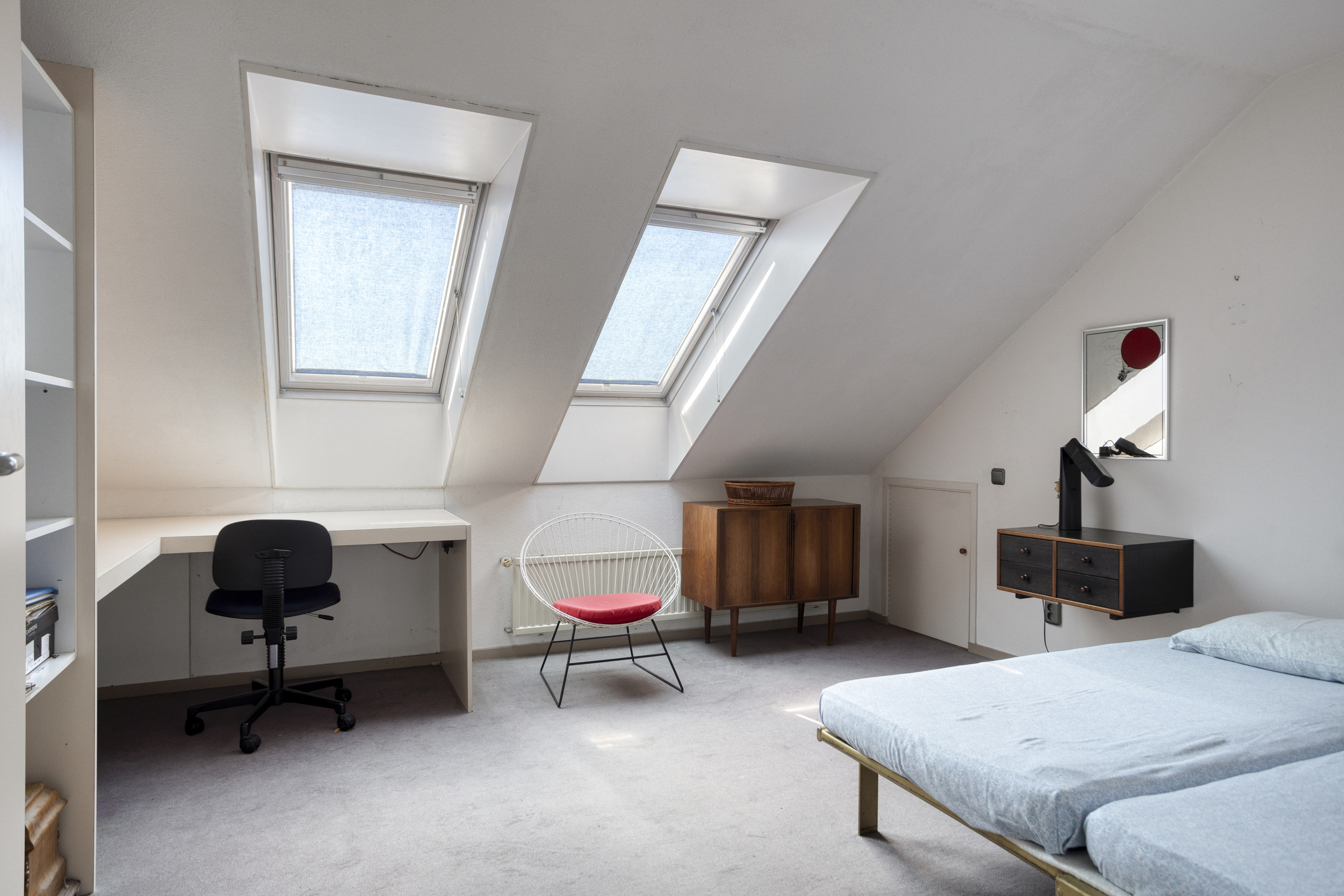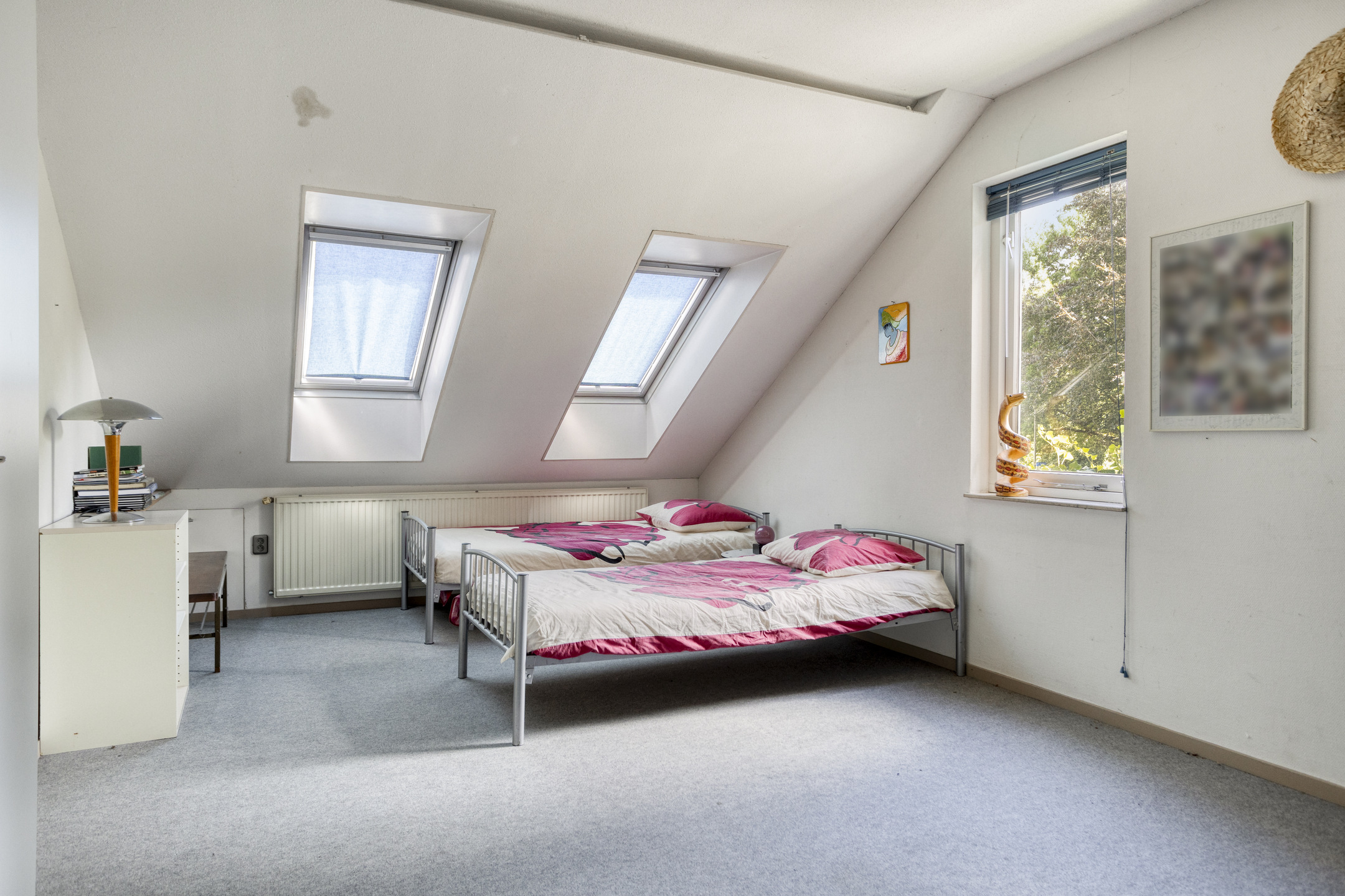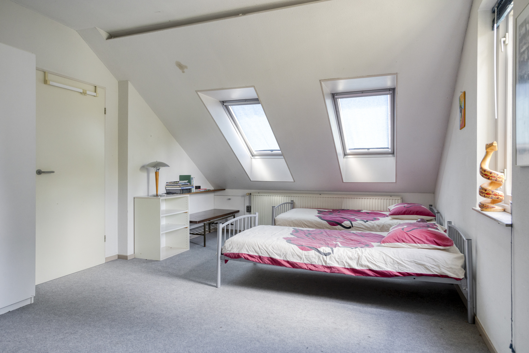De eerste slaapkamer, gelegen aan de achterzijde, is royaal van formaat en voorzien van twee Velux-dakramen. Hierdoor is de kamer licht en veelzijdig in te delen. Er is meer dan genoeg ruimte voor een tweepersoonsbed en een royale kastenwand.
