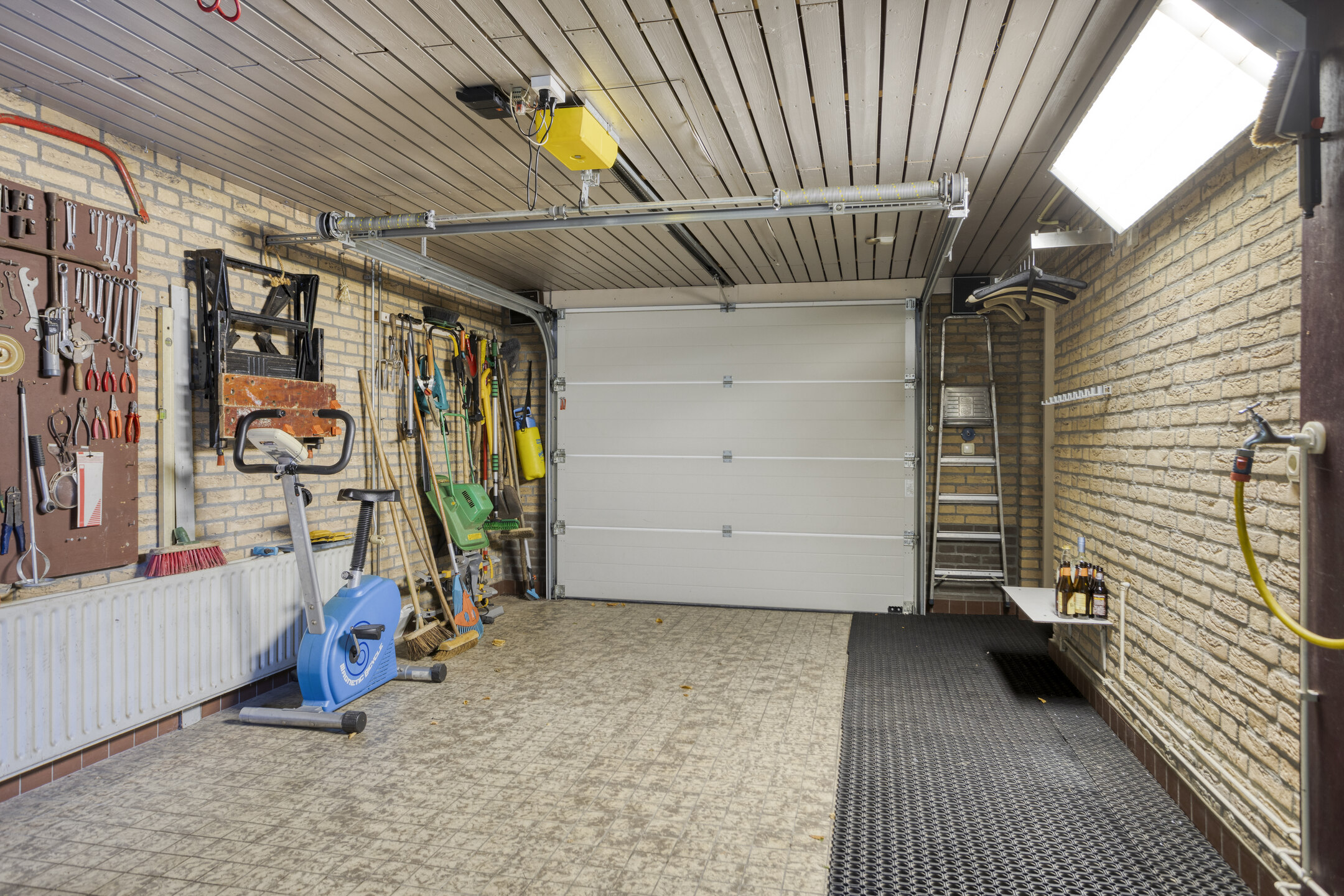 • Garage met elektrische roldeur, vliering en veel bergruimte