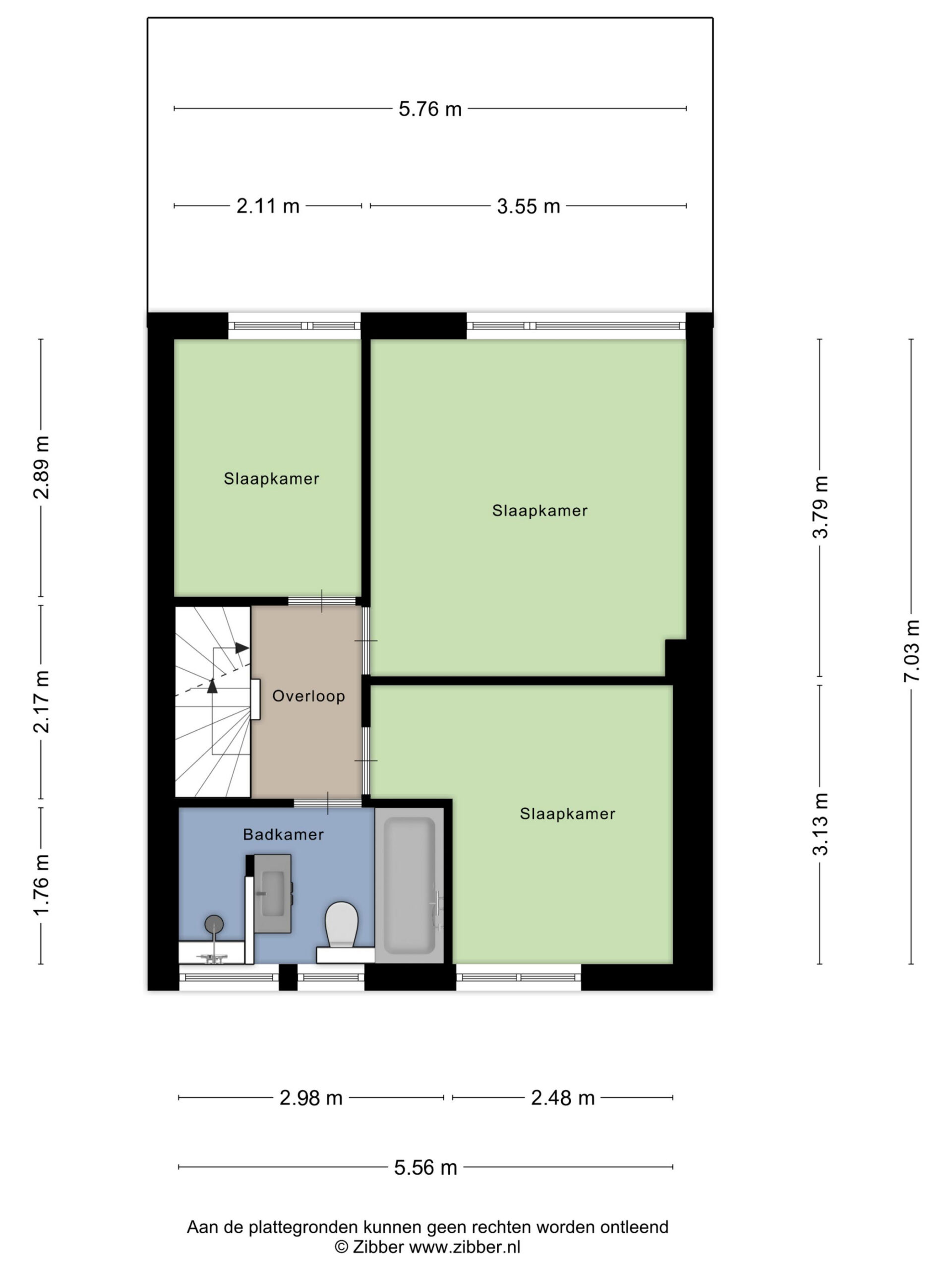 De hoofdslaapkamer aan de achterzijde is ruim genoeg voor een groot bed en een kledingkast. De tweede kamer is lichter en kleiner, nu ingericht als werkkamer maar ook heel geschikt als kinderkamer. De derde slaapkamer aan de voorzijde is verrassend ruim en biedt uitzicht op de voortuin en het veldje. Hier heb je volop mogelijkheden om de kamers naar eigen wens in te richten.